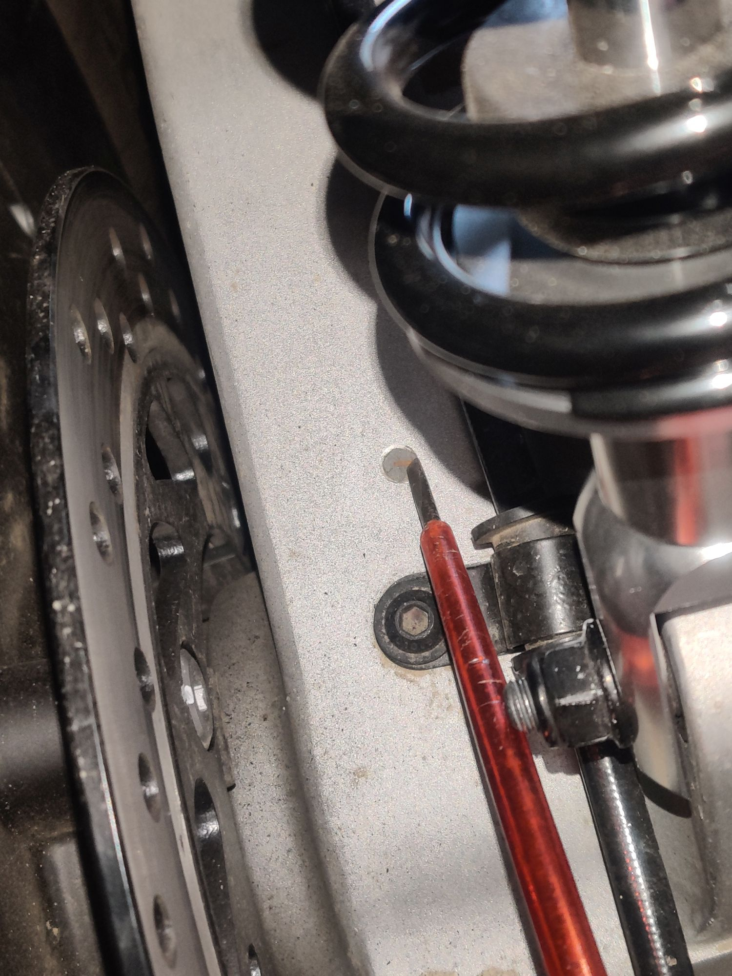 Wenn ihr genau von oben auf die Aluseite des Seitenarms schaut... bei mir sind dort Bohrungen, die aber dicht geschmiert zu sein scheinen. (neben den Halterungen der Bremsleitung, sind im letzten Bild von wrmueller sichtbar wenn man reinzoomt.)