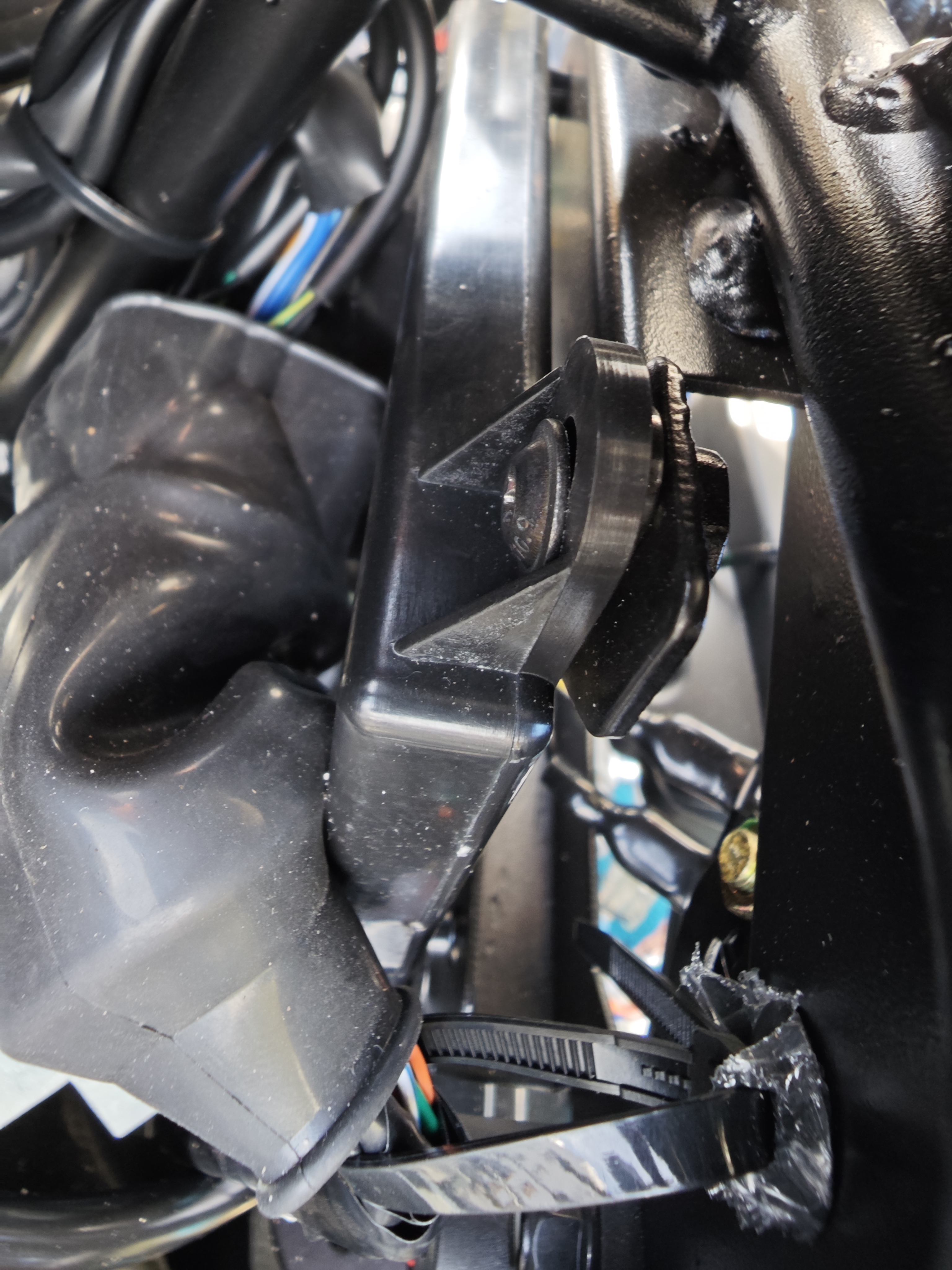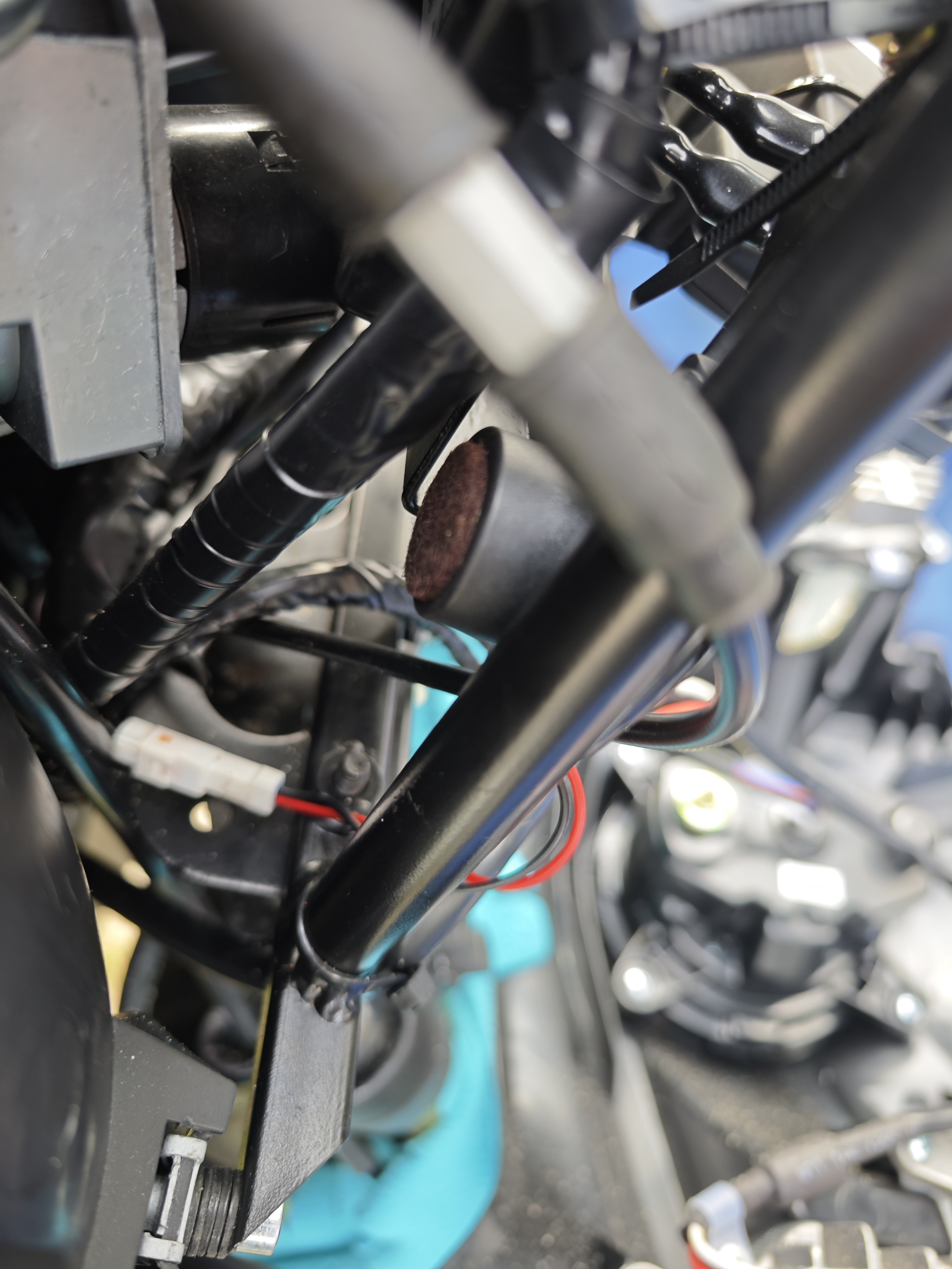 Die Bremsleitungen klopfen auch noch so wunderbar an die Beinschürze aus Kunstoff, kein Wunder also dass die Geräuschkulisse so ist wie sie ist... ich überlege, da mal selbstklebende, dünne Moosgummi-Stücke and die Plastikwand zu kleben, damit es zumindest mal etwas gedämpft wird vom Geräusch.