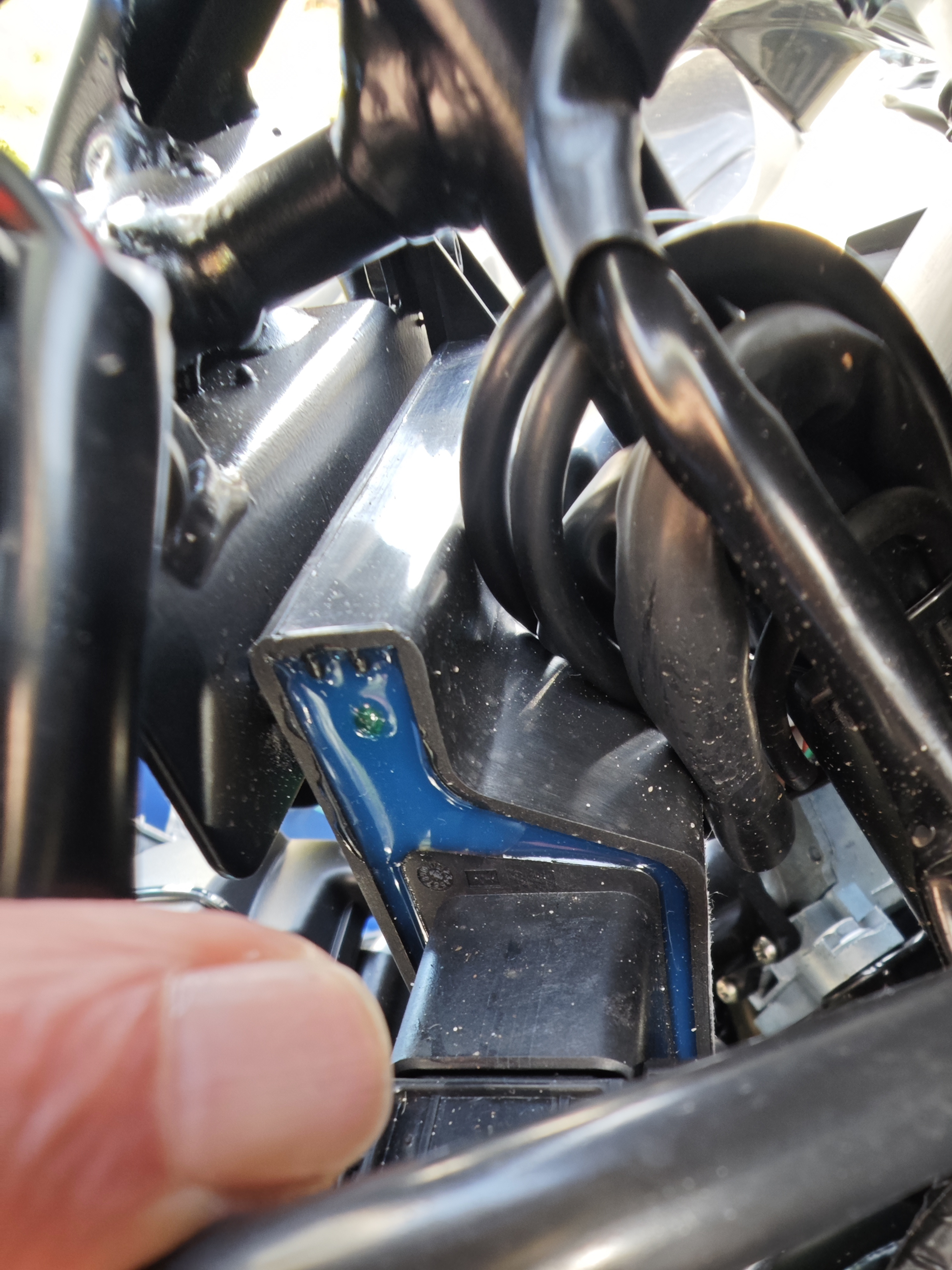 Das "Beste" aber: Beim wieder Aufsetzen der Frontverkleidung hat sich die Blechkrallen für die Display-Schraube rechts beim Ansetzen verabschiedet - offenbar genau in den Spalt zur Bodenverkleidung! Ich hätte K*tzen können! Hab versucht mit Magnet am Bändchen zu "Angeln", erfolglos. Ebenso versucht, die Bodenabdeckung abzunehmen, aber die scheint so vielfach verschraubt zu sein dass ich irgendwann aufgehört habe. Jetzt besorge ich mir also erstmal Ersatz-U-Blechschraubenkrallen, mache das Ding wieder auf und hoffe dass die verloren gegangene Kralle sich irgendwann durch den Seitenständer-Ausschnitt von selbst da herus befördert. Oder hat jemand noch einen Tipp, wie man da unten dran kommt? (sie kann eigentlich nur da drin liegen, beim Abfallen klang es nach Kunstoffaufprall, und sie war nirgends sons tmehr zu sehen / zu finden.