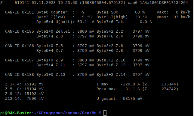Das zeichnet per "candump" eine Fahrt, einen Ladevorgang oder sonstwas, was gerade auf dem CAN-Bus passiert, auf.