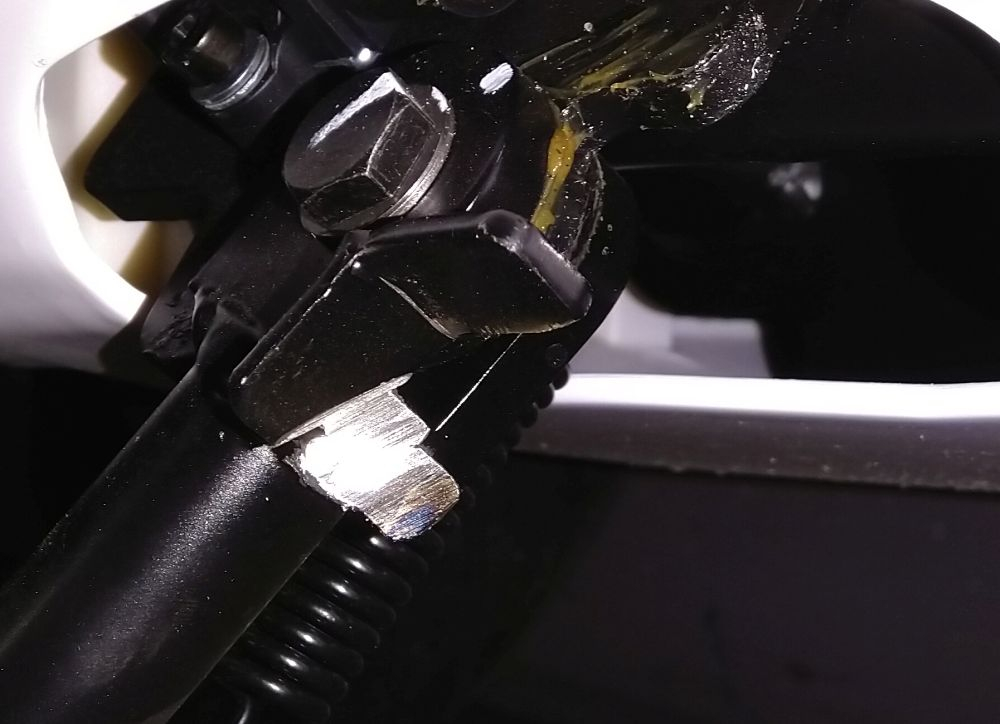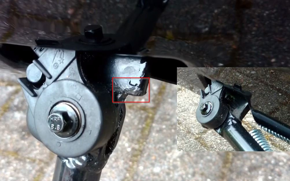 Da ist das Blech, das den Taster für den Seitenständer betätigt. Das muss etwas zurückgebogen werden, sonst wird der Taster der Anschlag.