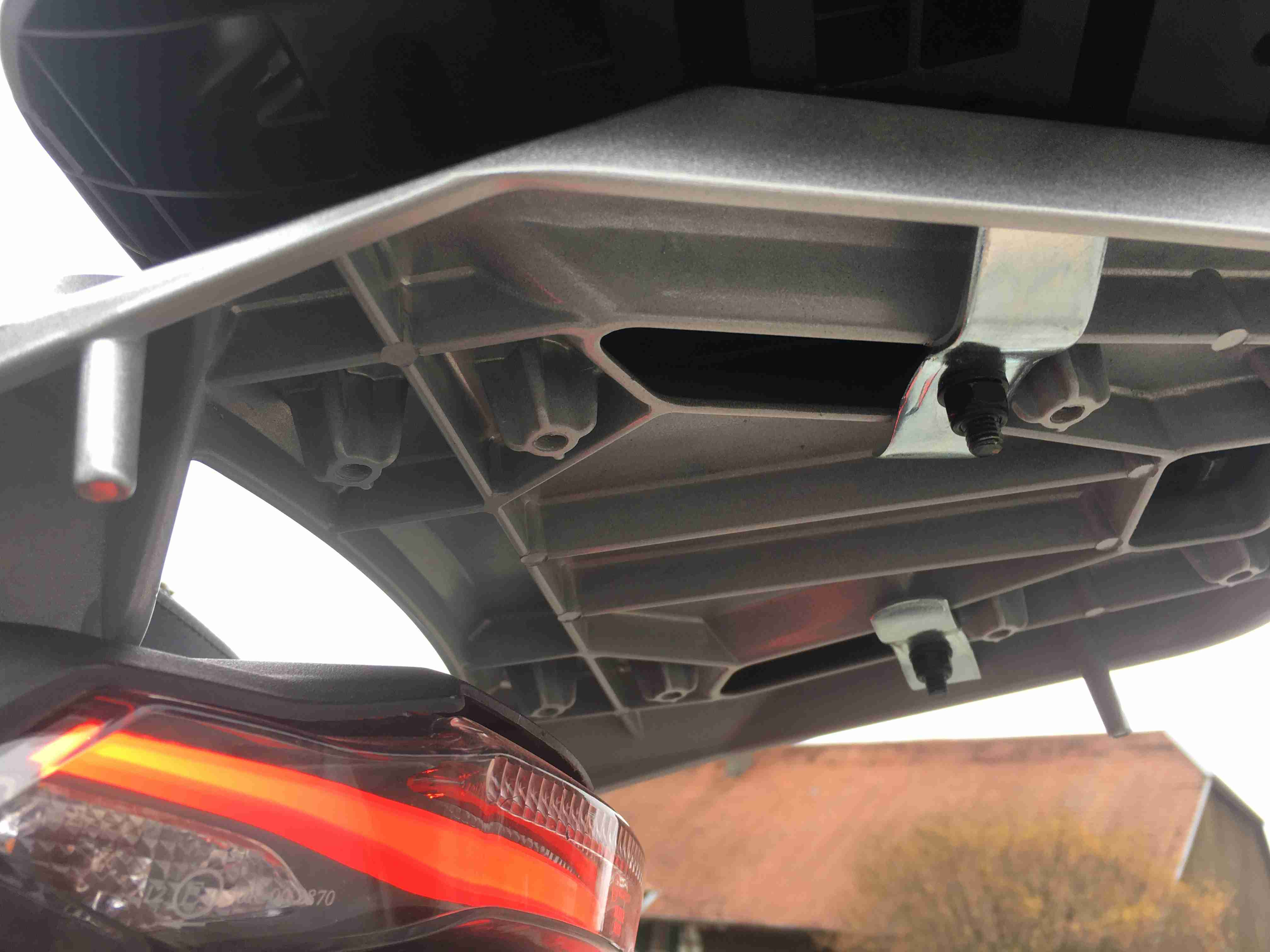 Bei meinen SHAD-Träger(Suzuki Katana AY 50) musste ich für meinen Givi-Koffer andere Löcher bohren