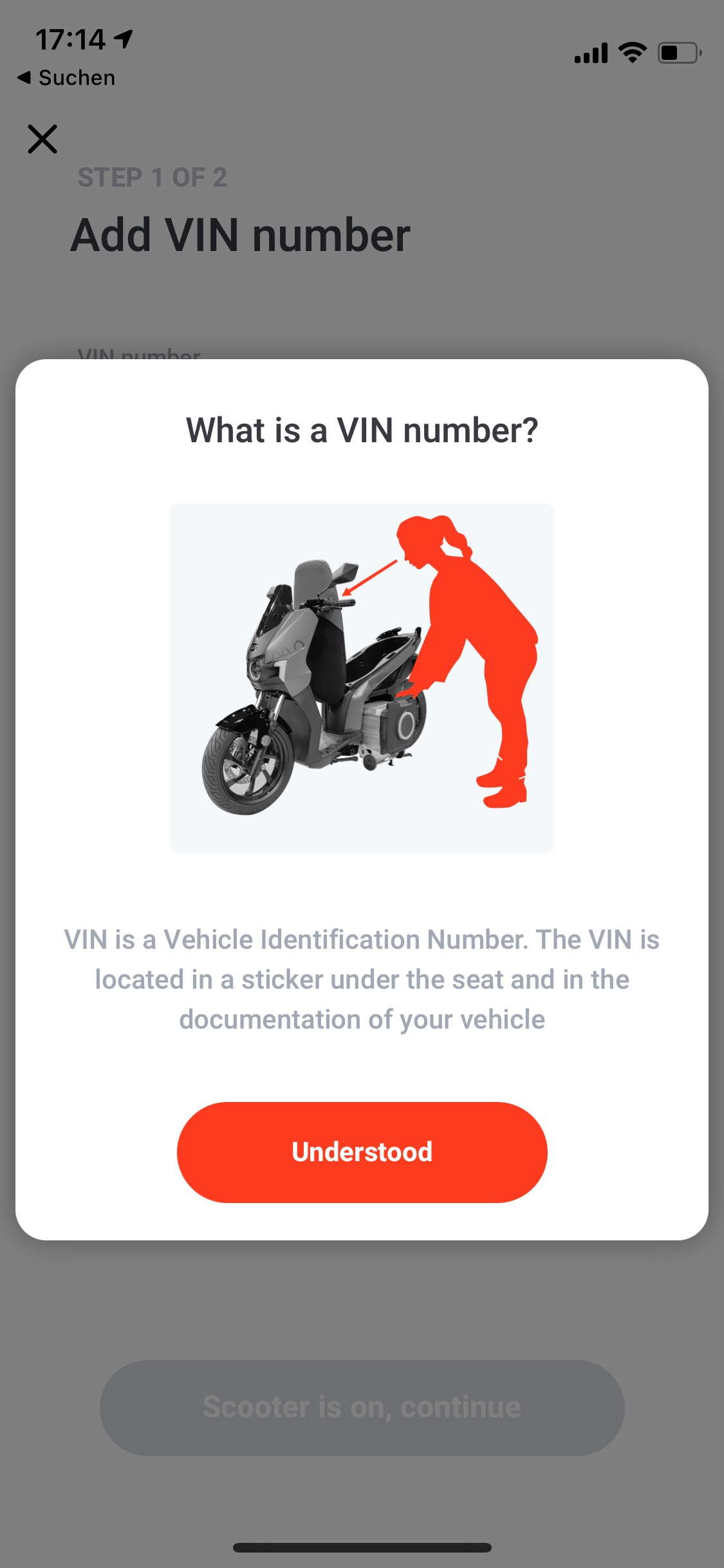 Die Mo App werden wir nicht mit unserem Roller koppeln können, da wir keine VIN haben.