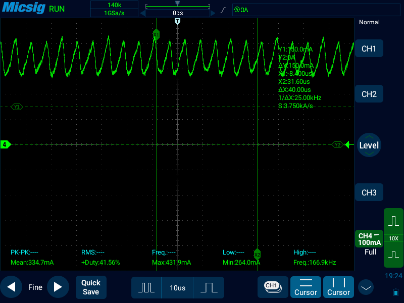 Ich denke aber nicht, dass der Scheinwerfer auf 14,4V "optimiert" ist. Bei den üblichen Schaltwandlern ist auch nicht zu erwarten, dass bei 14,4V mehr Leistung gezogen wird (es sitzt definitiv ein Schaltwandler in der Einheit, man kann einen hochfrequenten Ripple im Strom erkennen). Von daher sehe ich also absolut kein Optimierungspotential. Abblend- wie Fernlicht ca 160 kHz, Abblendlicht ~340 mA@12V -> gerade mal 4 Watt. Das ist nun wirklich nicht viel und passt zum allgemein funzligen Eindruck. Von der Medley habe ich leider keine solche Messwerte...