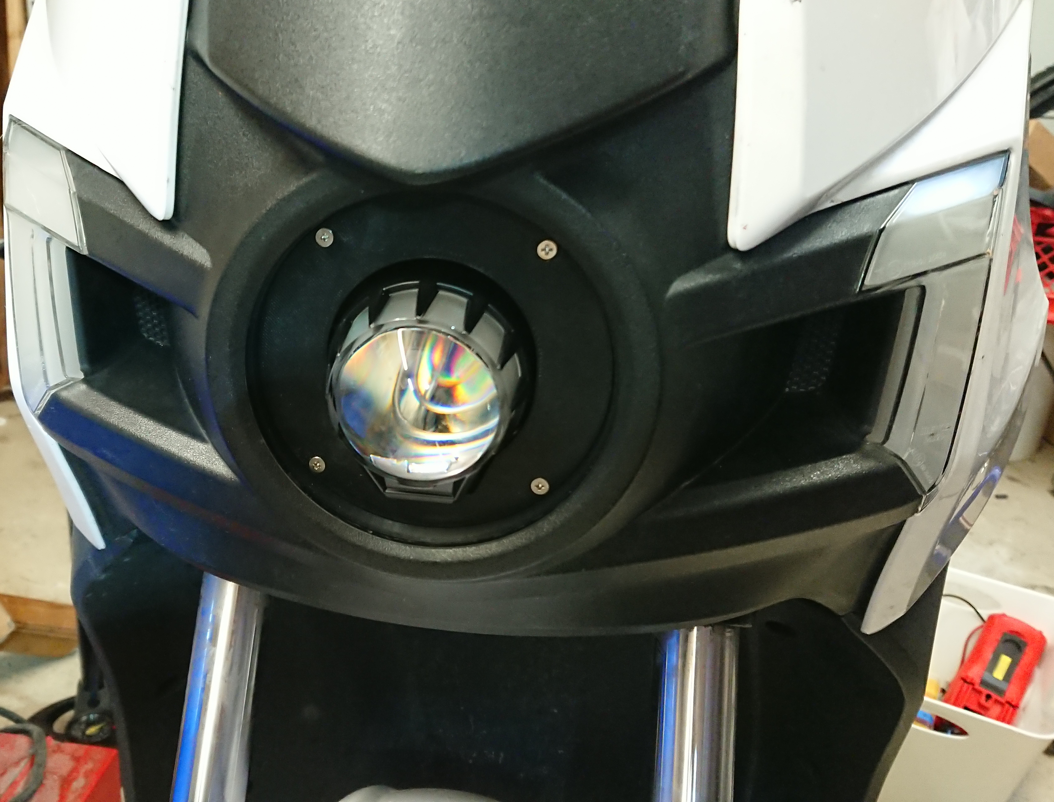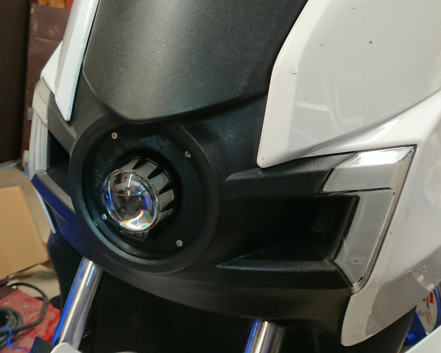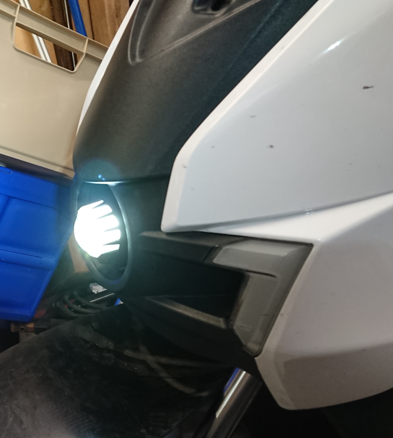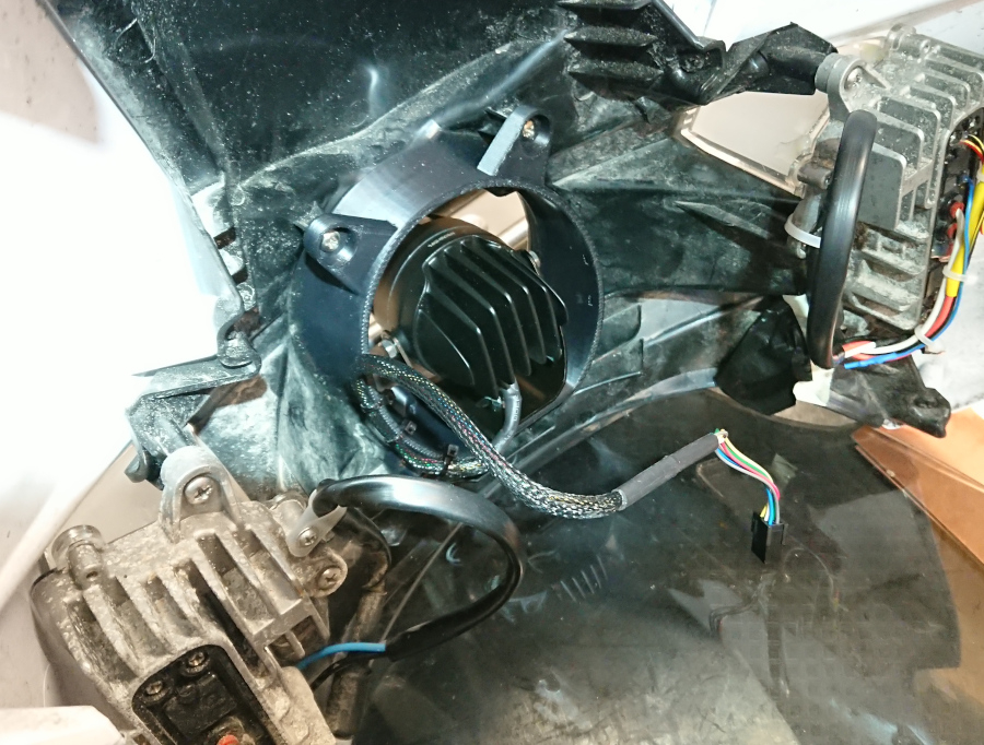 Bin am überlegen, ob sich ein anderer Scheinwerfer einbauen ließe. Habe mit dem Händler gesprochen, er hat gemeint, die Stromaufnahme sei kein Problem. Aber der Ausschnitt in der Karosserie ist nur etwa 107 mm, also etwa 4 Zoll, da ist kaum etwas zu finden. Muss ja Abblendlicht UND Fernlicht in LED-Technik können und auch noch eine E-Nummer haben. Befestigung ließe sich vermutlich mit einem 3D-Druck erledigen.