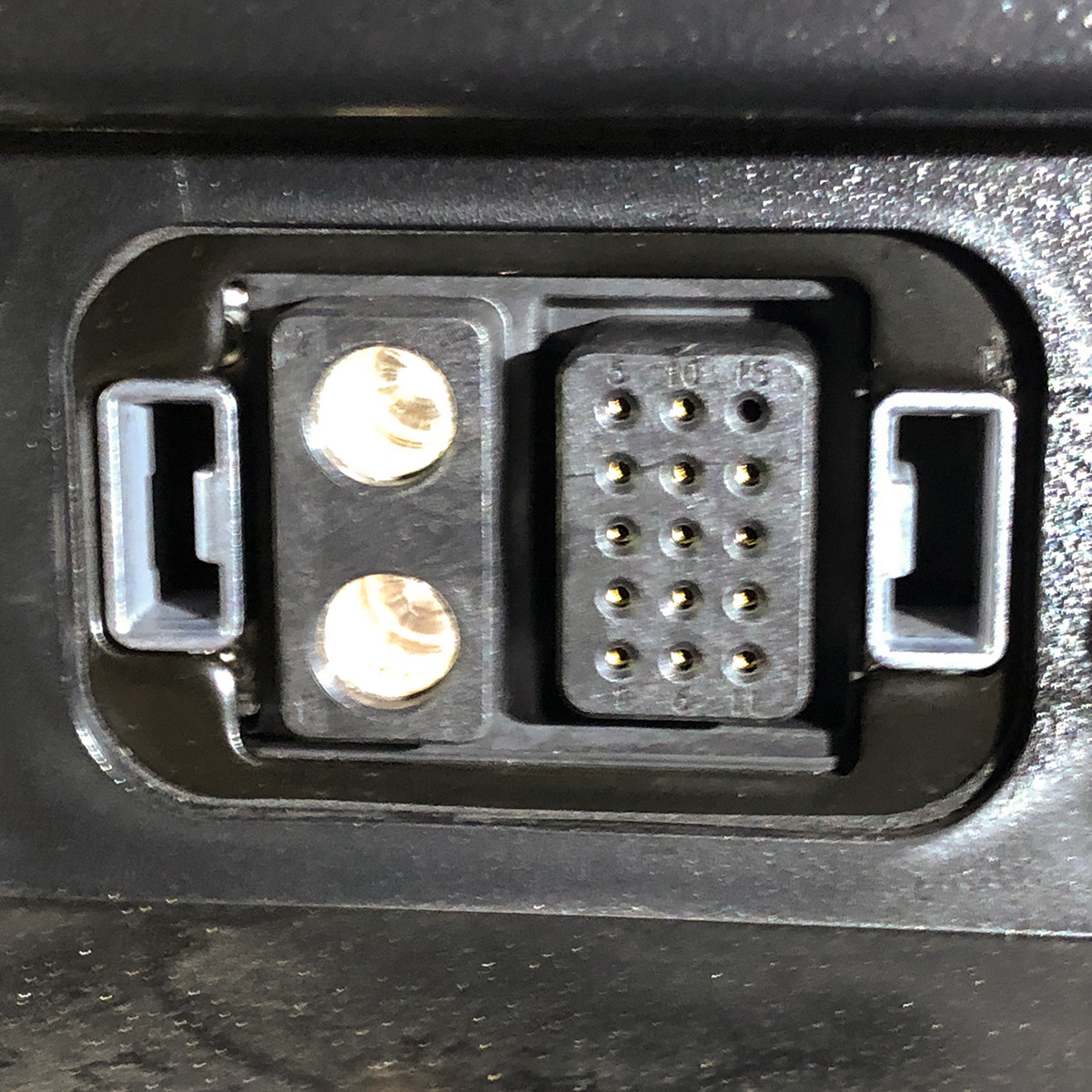 Checke mal den Multiconnector. Das Bild zeigt den Connector im Akkufach. Pin 14 (links oben) sollte intakt, fest und sauber sein. Schaue auf das Pendant am Akku.
