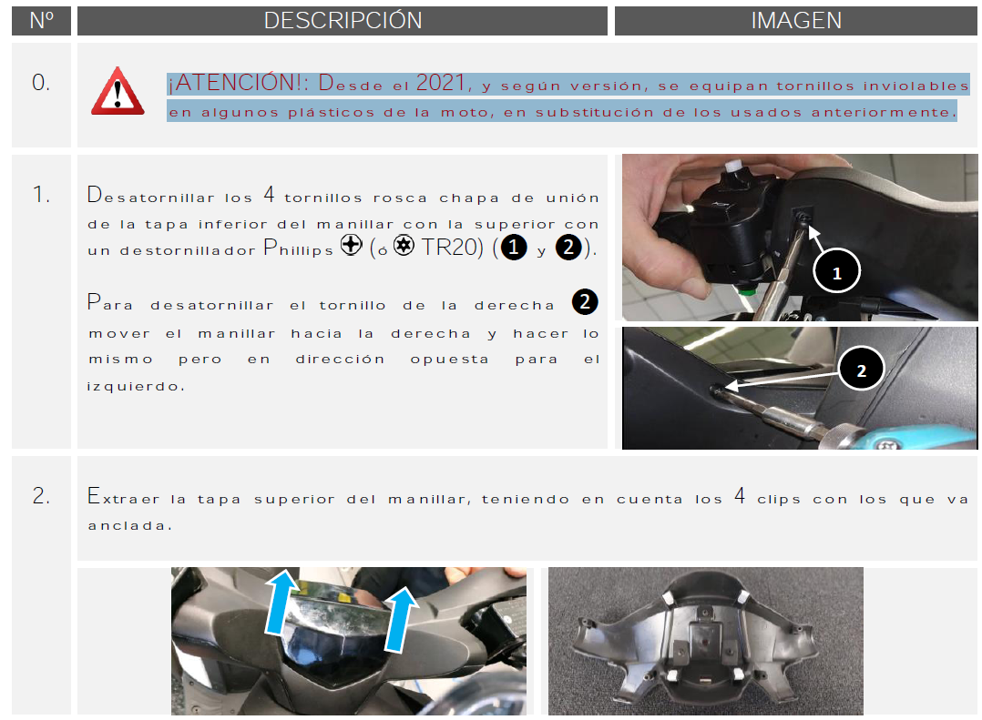 Habe es gerade versucht. Kann es sein, dass die Schrauben für die "große" Lenkerabdeckung etwas exotisch sind? Weder Innensechskant noch Kreuzschlitz scheinen zu passen.