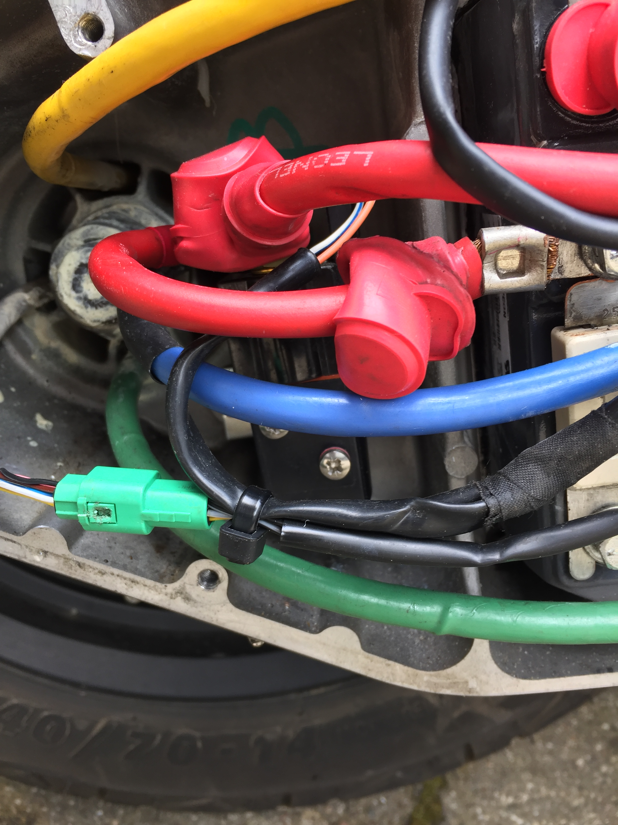 Aus irgendeinem Grund muss das warm werden. Vielleicht ist auch nur das Kabel zum Controller zu kurz und wird durch die geringe Masse und die Isolierung die Wärme nicht los? Der Controller hat ja Eingangs nur eine Blindschraube als Terminal für die Sicherung. Das wird sich alles schnell aufheizen.