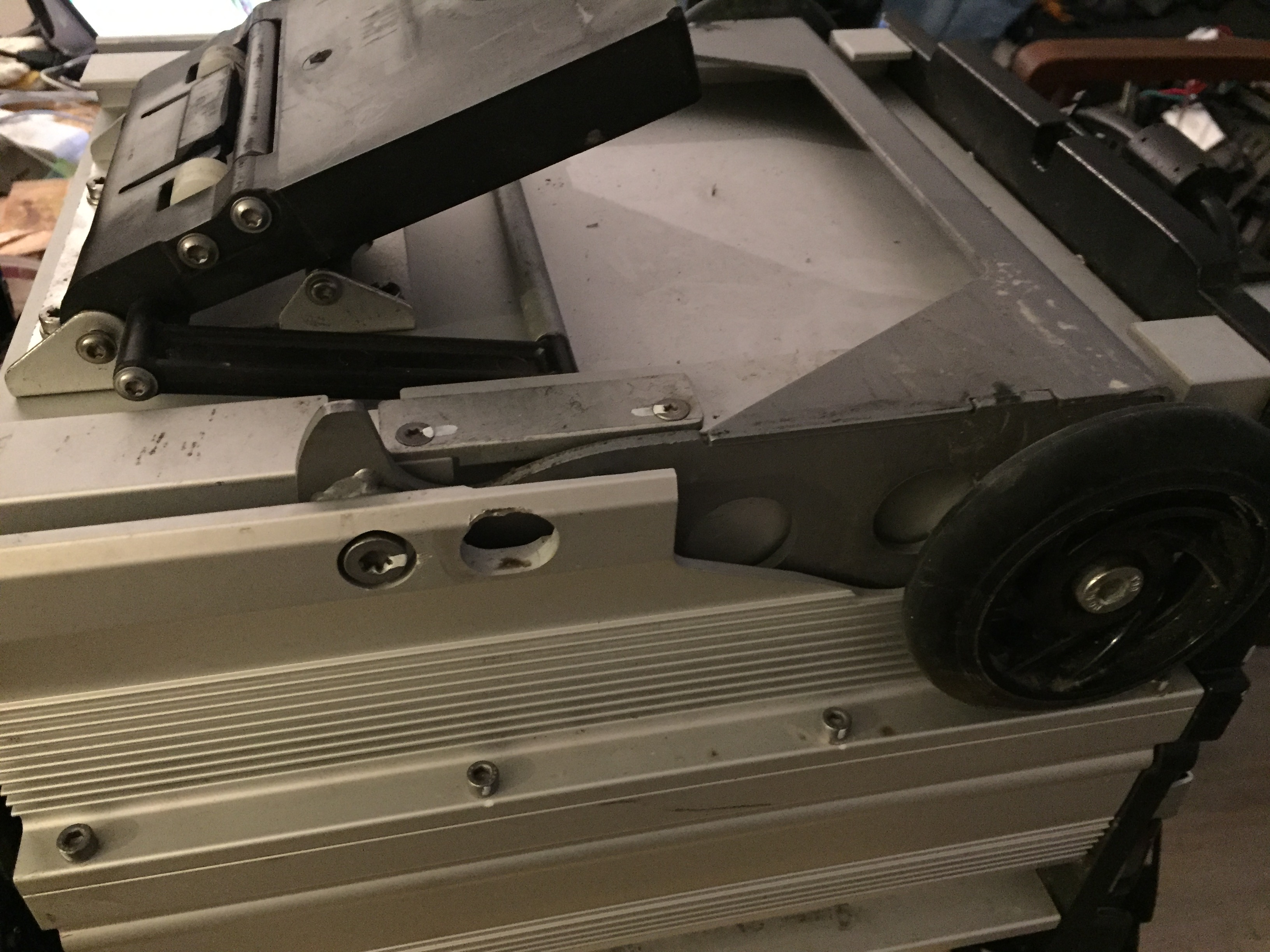 Wenn die Räder nicht runterklappen, geben diese die eigentlichen Verriegelungsnasen nicht frei. Diese wirst du im verklemmten Zustand garantiert nicht mit Kraft überwinden.