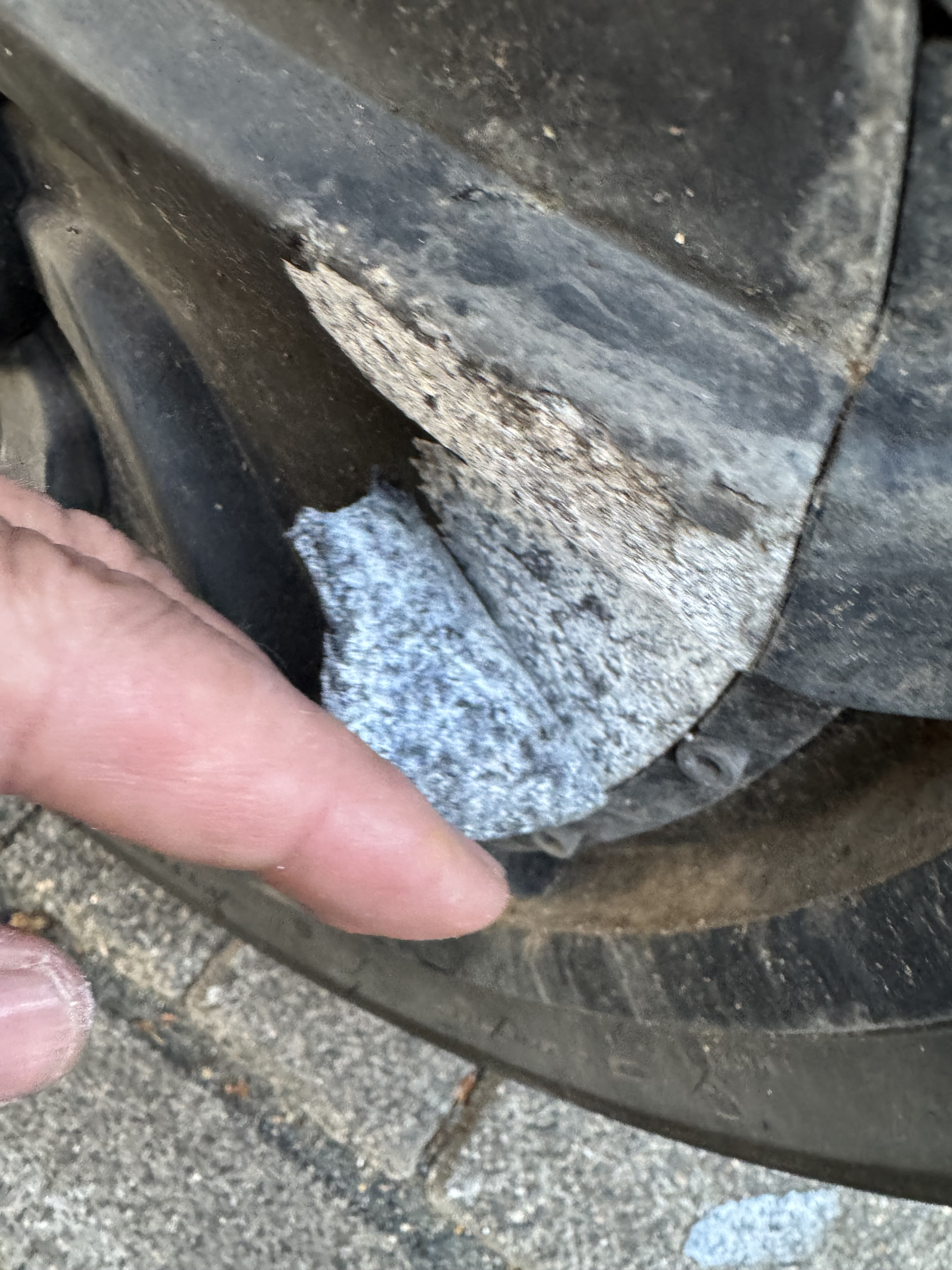Kurz: sollte es zwischen Felge und Motor genauso wie aussen aussehen, ist es nicht nur ein Schönheitsfehler. Falls das ein L3e ist und der nächste Tüvler sein Handwerk verstehen sollte, will der beim nächsten Termin sehen, wie es darunter ausssieht.