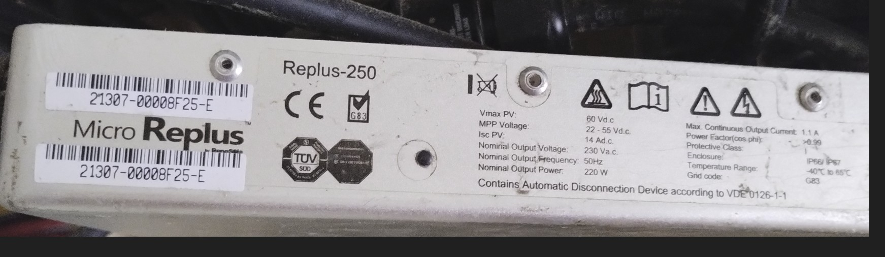 - Wechselrichter für Grid Tie ==> Micro Replus 250 von 2015 (s.Bild)