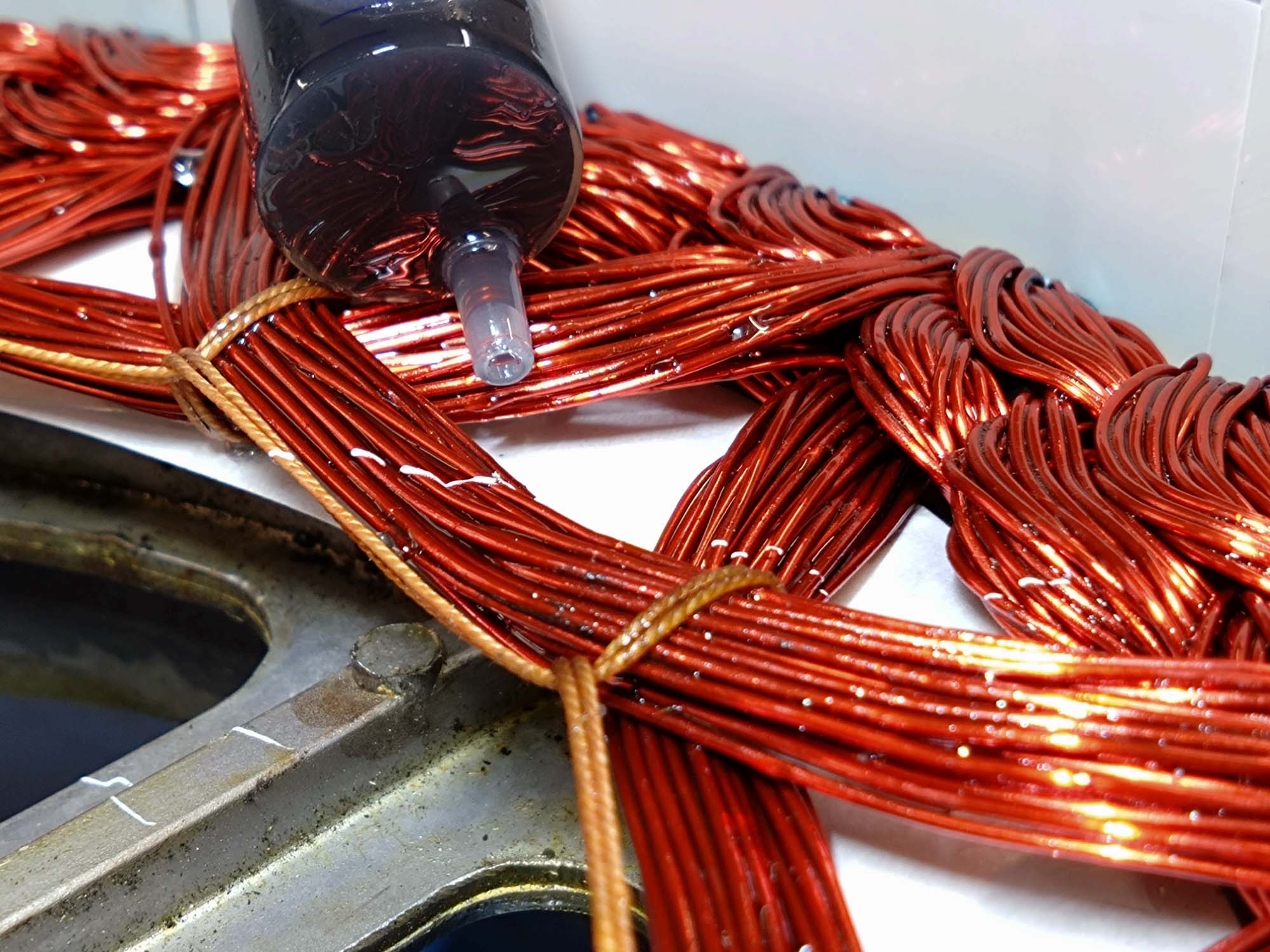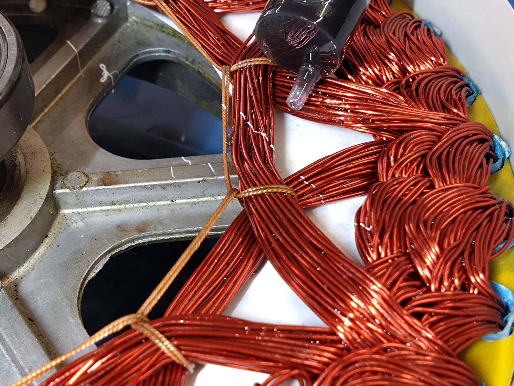 Motor mit Polyester im Spalt und Isolation an bestimmten Stellen zwischen den Spulen und Stator.