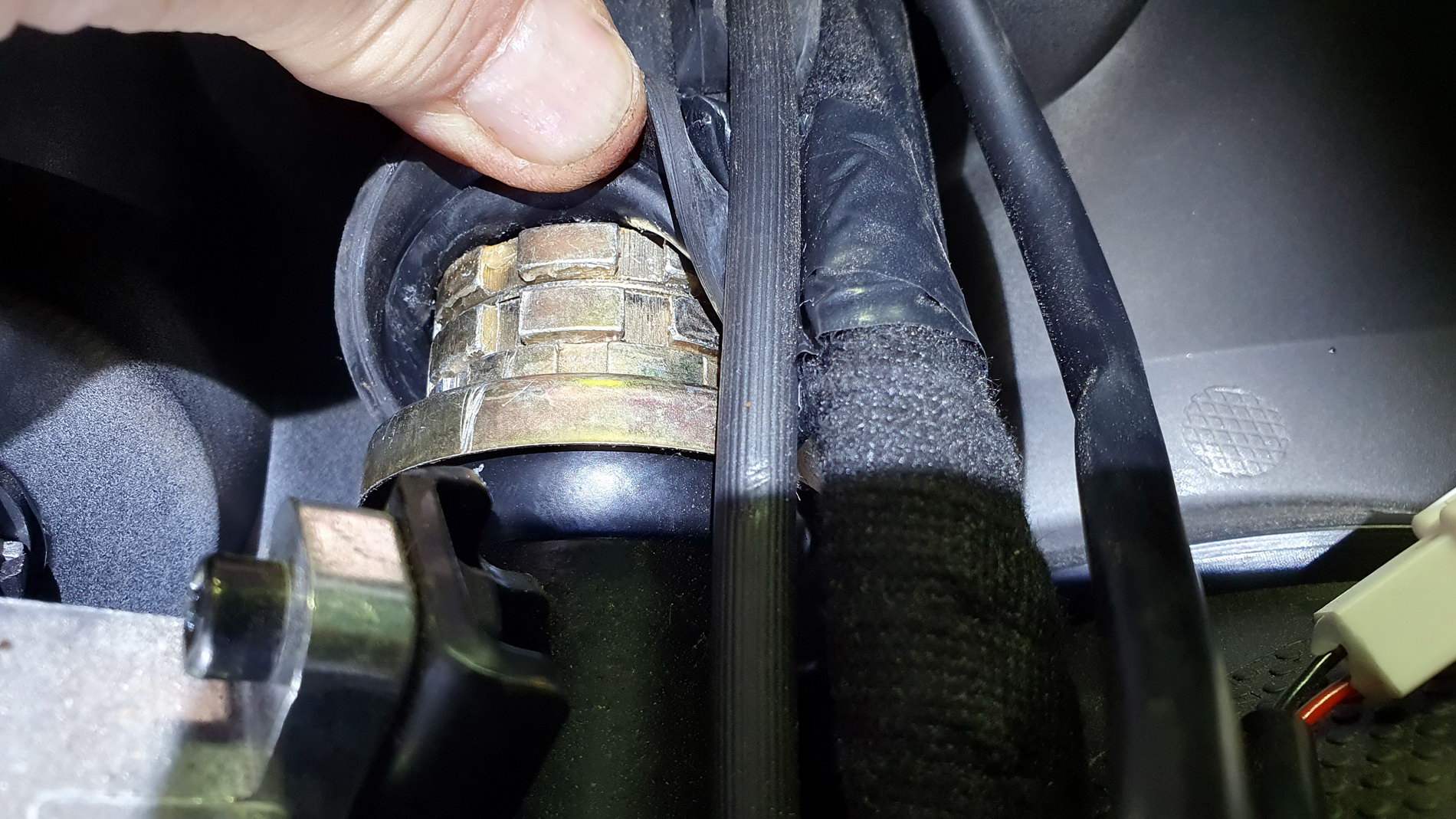 Nochmal der Hinweis, dass der untere Ring ziemlich fest sein kann (WICHTIG: Lenkung muss leichtgängig bleiben) und es gibt eine Blechsicherung am 2./3. Ring !!