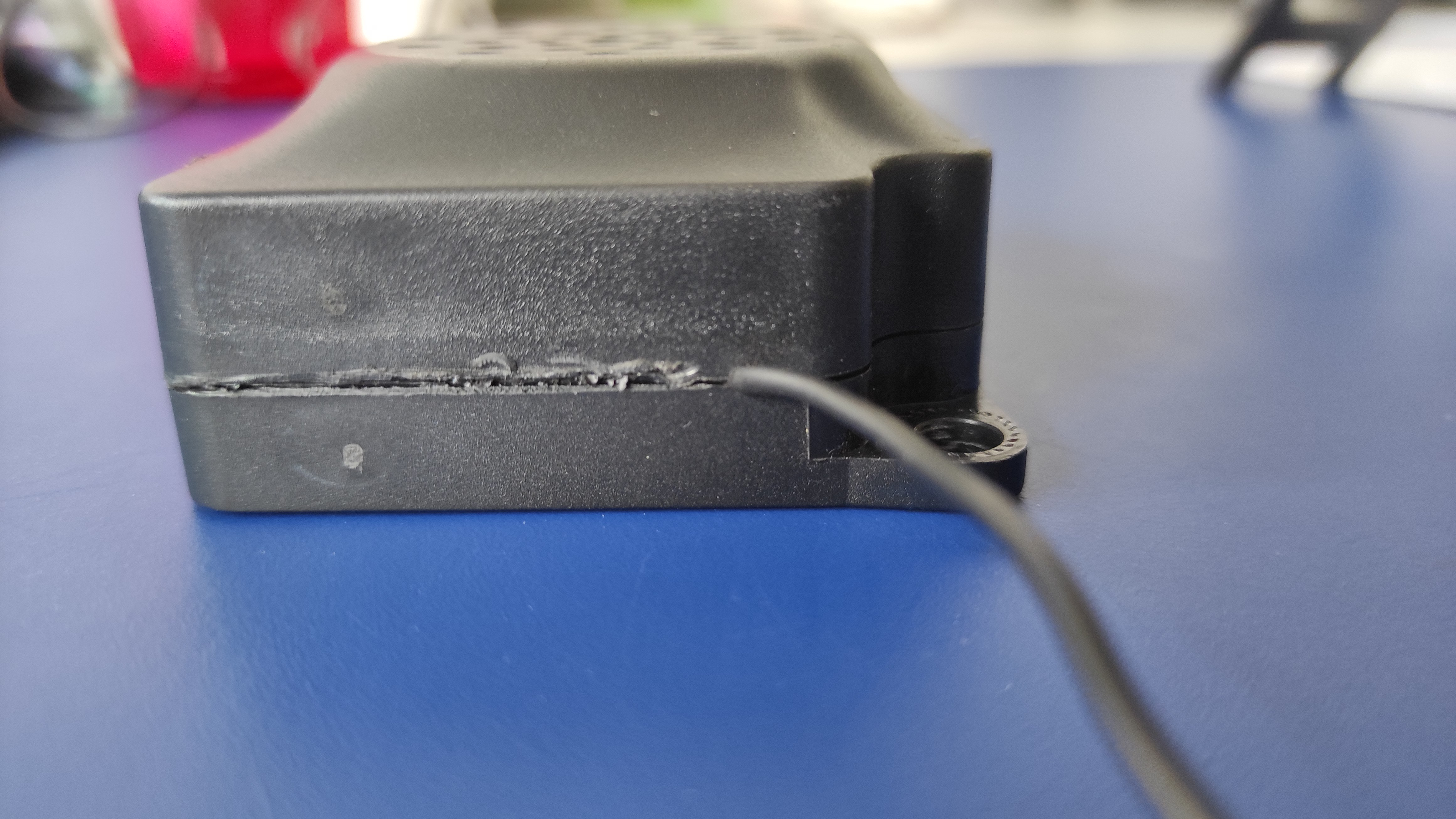 Das Kunststoffgehäuse besteht aus zwei Teilen, Ober- und Unterschale. Wenn man nun mit dem Cutter zwischen beiden Teilen rein schneidet (Vorsicht, dass ihr nicht zu weit rein kommt) und eine Seite damit quasi öffnet, dann kann man die Teile mit sanfter Gewalt auseinander klappen. Am besten auf der gegenüberliegenden Seite des Steckers, der ist nämlich verklebt und fungiert dann als "Gelenk" da der Kleber recht weich ist.