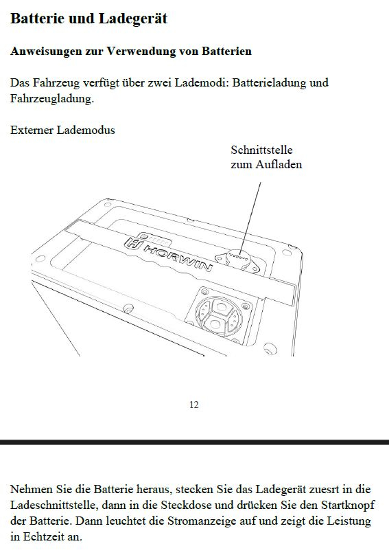 Von daher bin ich nicht nur der Meinung sondern sehe es auch als allgemeine Anforderung, dass man, auch in Deutschland, bei der normalen Nutzung der Horwin EK1, zu dem ich das Laden des Akkus hinzuzähle, ohne Studium des Handbuchs durchkommt.