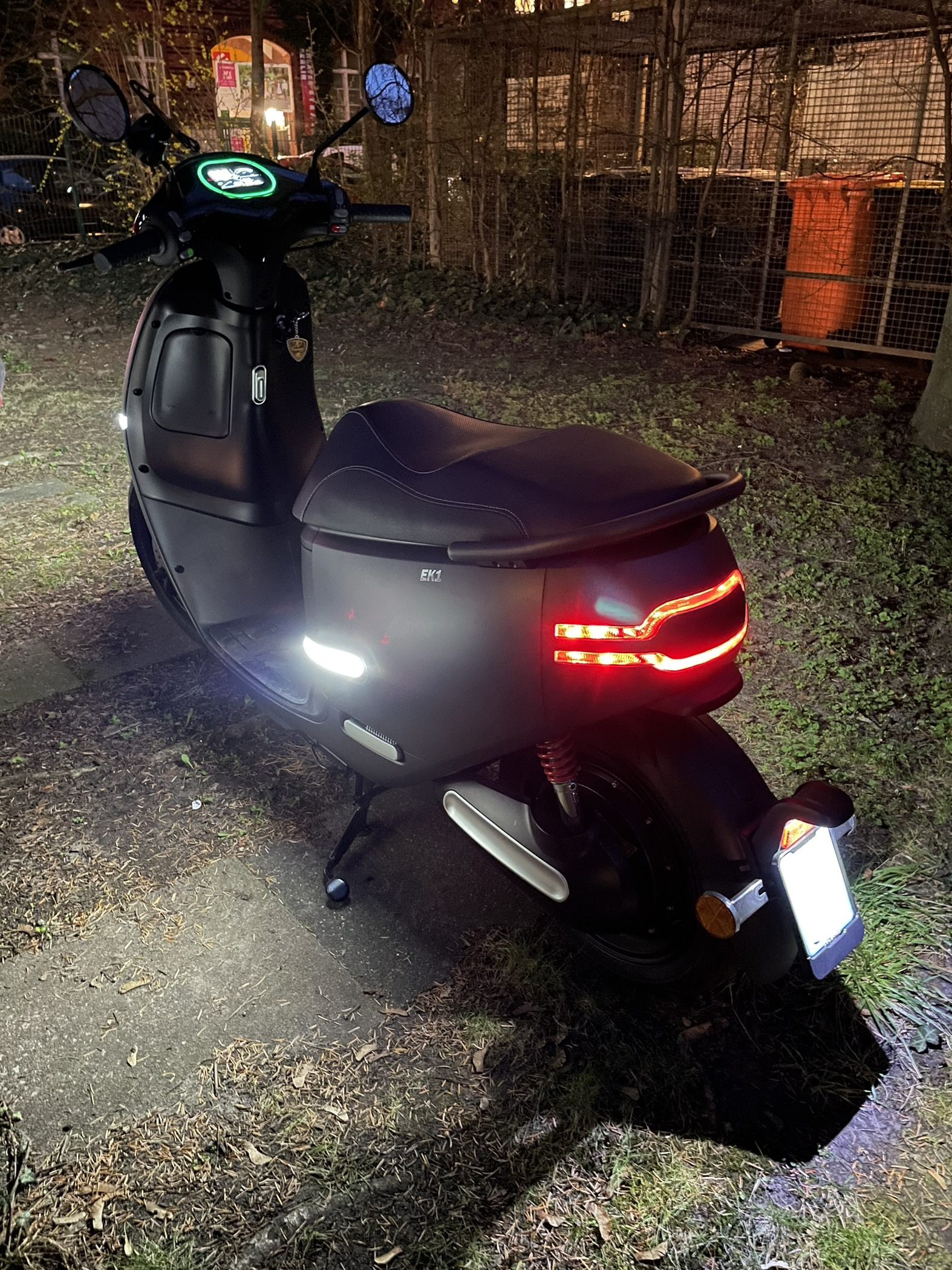 Habe heute Horwin (klingt wie ein Vorname :-D) gekauft. Spiegelabstand zu schmal, Anzug im 3. Gang angenehm sanft (Ich will im Stadtverkehr/Stau mit meiner 45km/h Gurke keinen Ducati-Anzug haben), max. 44 kmh in der Ebene, mehr nur bergab. Habe den dicken Akku genommen, der jetzt grad lädt. Die erste Probefahrt, 17km vom Händler nach Hause durch die Stadt, lief angenehm. Etwas störend das nötige Feingefühl um den Blinker (Kippschalter) auf neutral zu stellen, da bin ich noch den Schiebeschalter mit Rückstellknopf gewöhnt. Das Softwareupdate klingt interessant (mein Roller ist gestern erst geliefert worden). Die Seiten-LEDs werde ich dieses WE aktivieren. Aber ansonsten: Schick (knallorange), bequem, Helm paßt rein, ausreichend um meinen heiligen Hintern zum P+R zu befördern und abends zurück.
