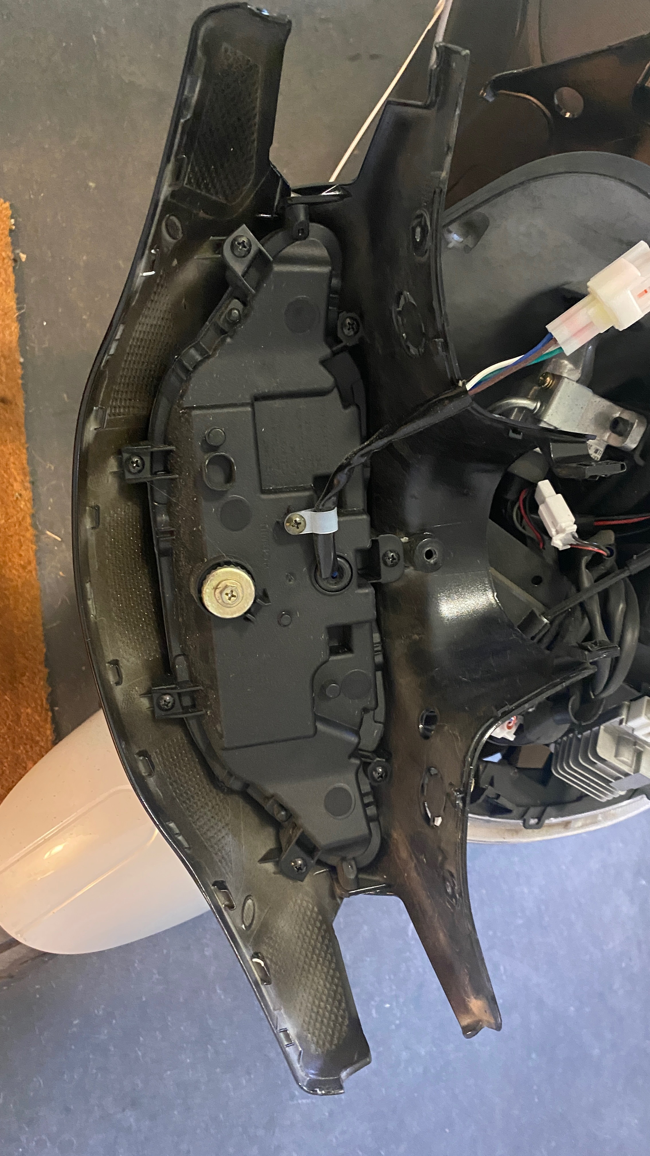 Die drei Schrauben am Fuß der Lenkerverkleidung, 2x Kreuzschlitz, 1x 8er Nuss meine ich.