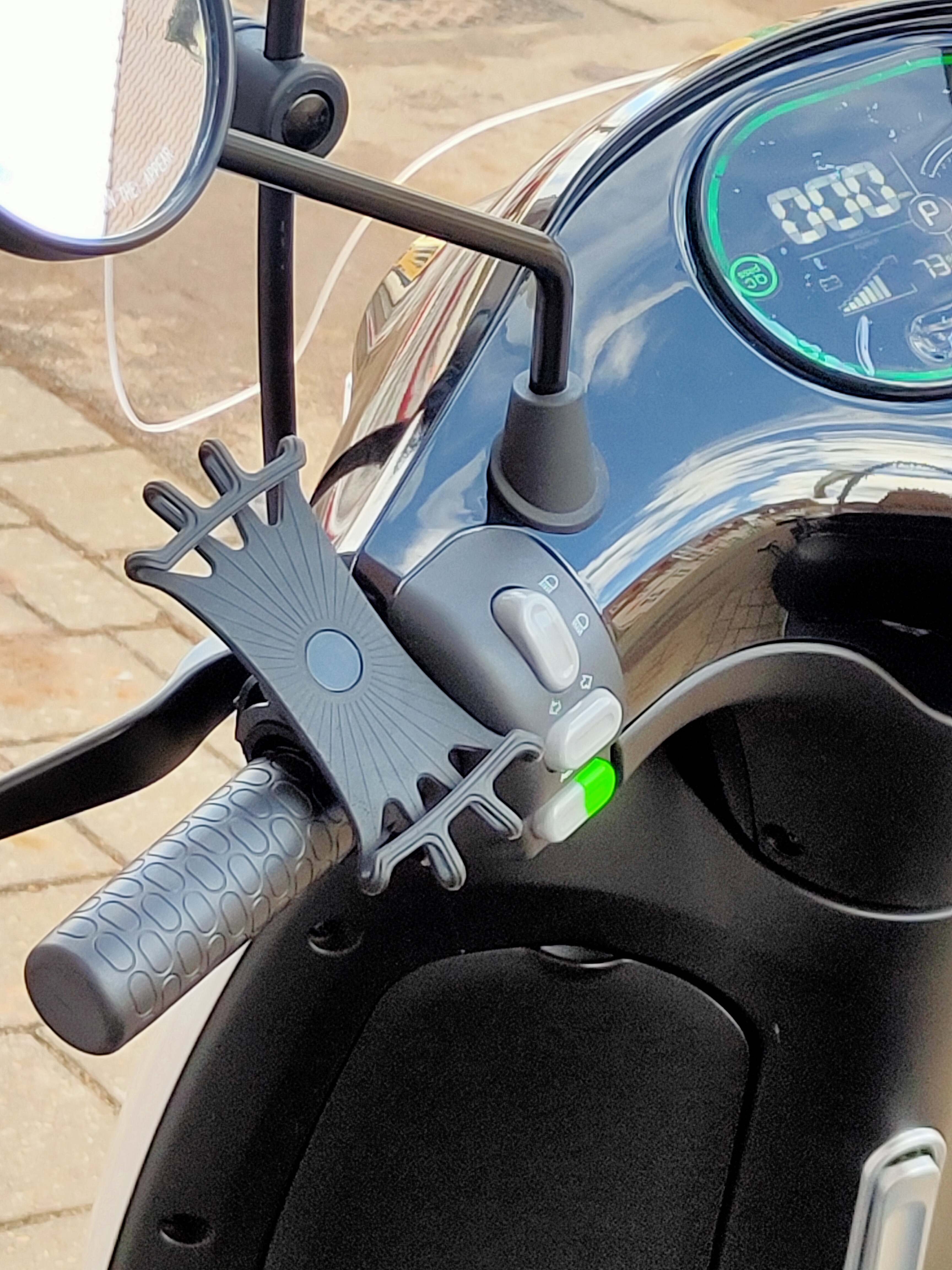 Ich habe einen Silikon Handyhalter - eigentlich fürs Fahrrad - an den linken Griff montiert. Mit mehreren Stufen an der Schelle. Das hält bombenfest und hat nur wenige Cent gekostet. Da wird das Smartphone straff eingespannt. Man kommt dann aber nicht mehr so gut an den Blinker dran.