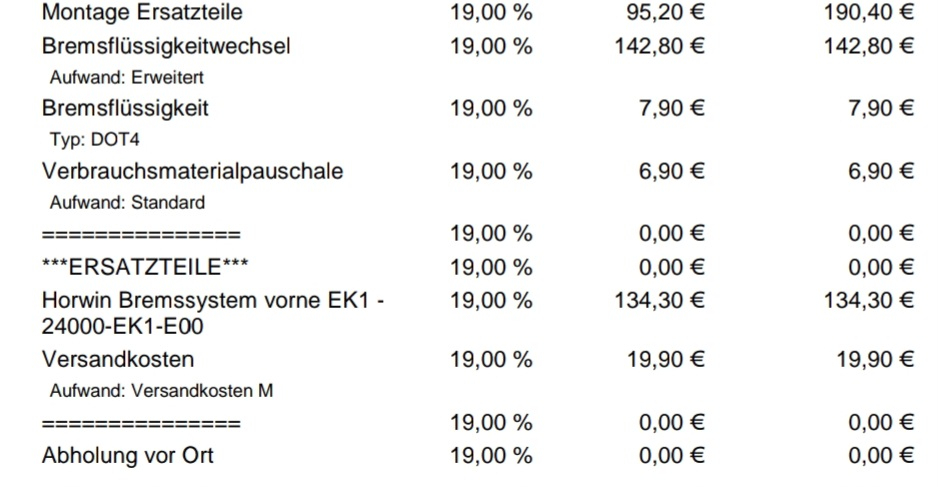 Und, 280,00 für Bremsflüssigkeitswechsel ? Kommafehler oder hat der Anbieter psychoaktive Substanzen intus ?