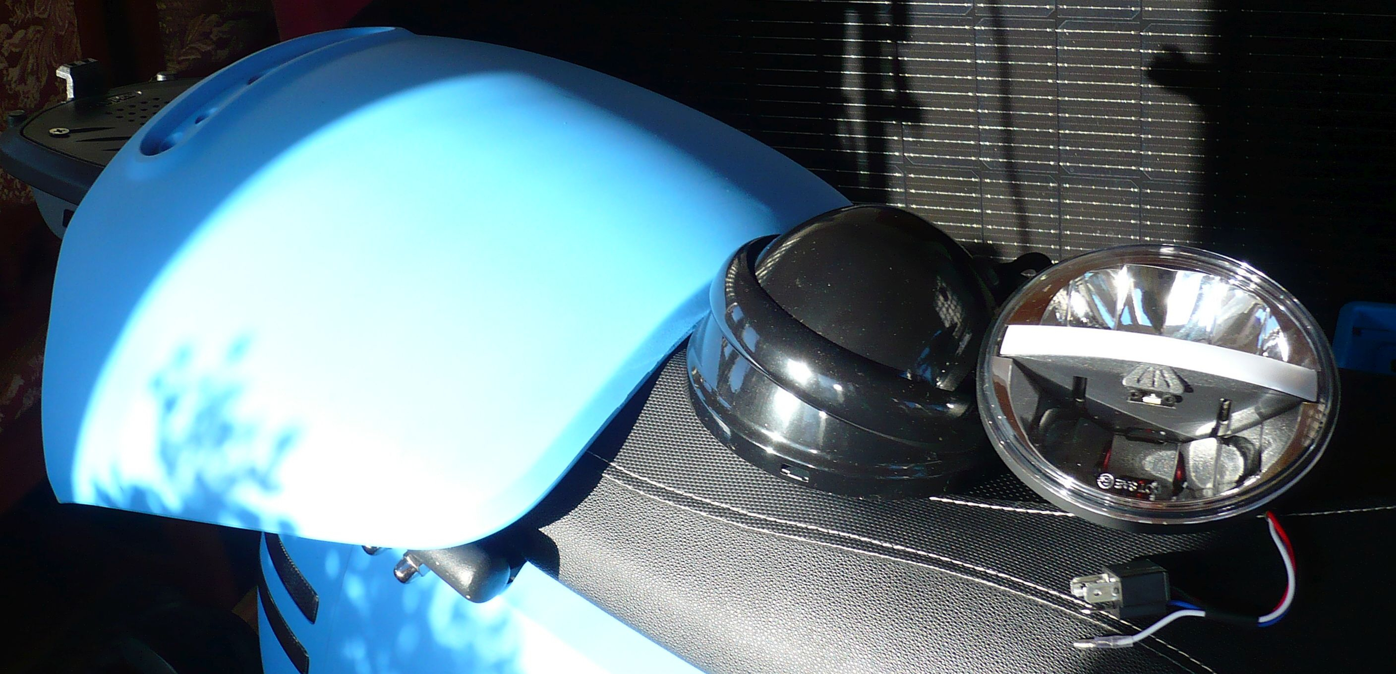 Ich habe einen EK1-Roller und möchte einen besseren Scheinwerfer (der die Straße wirklich ausleuchtet) auf der blauen Frontpaneele anbringen: