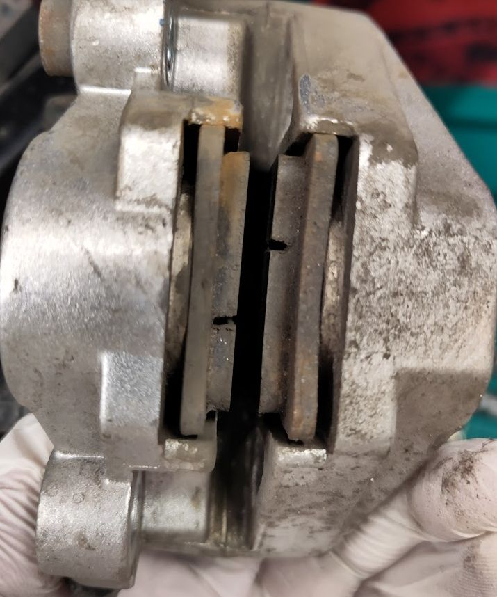 Habe mal den Sattel abgenommen, dauert zwei Minuten. Die Beläge sind sehr gleichmäßig abgefahren. Laufleistung 6500km bei 50% Stadtautobahn.