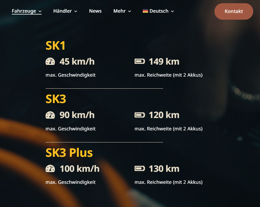 mit einer Reichweite von 80 km. Er soll 90 km/h laufen.