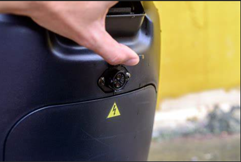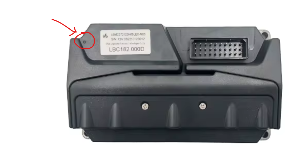 Angeblich befindet es sich auf dem Controller (FOC), der sich auf der vorderen Abdeckung des Sattels befindet, auf der ein gelber elektrischer Warnblinker angebracht ist.