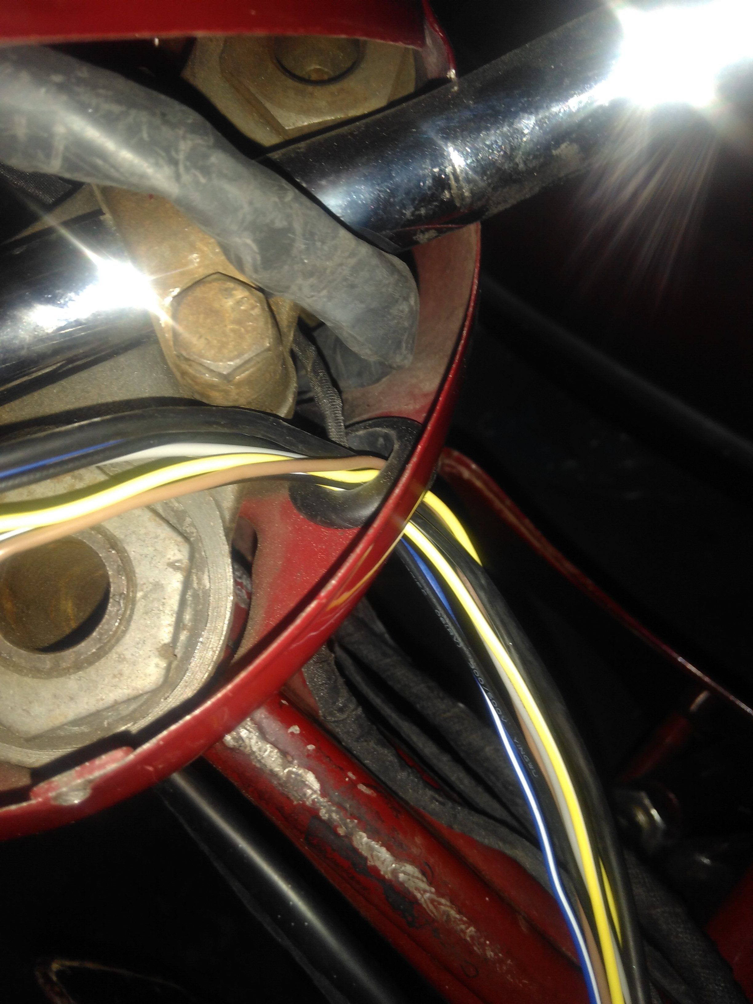 Um die Kabel+Stecker durch ein kleines Loch zu bekommen, hat die Werkstatt das Kabel abgezwickt und den Stecker wieder angeklemmt. Sie wollten die Motorradsubstanz nicht beschädigen. Für mich stellt sich nun das Problem :wie wie bekomme ich einen neuen Gasgriff dran?