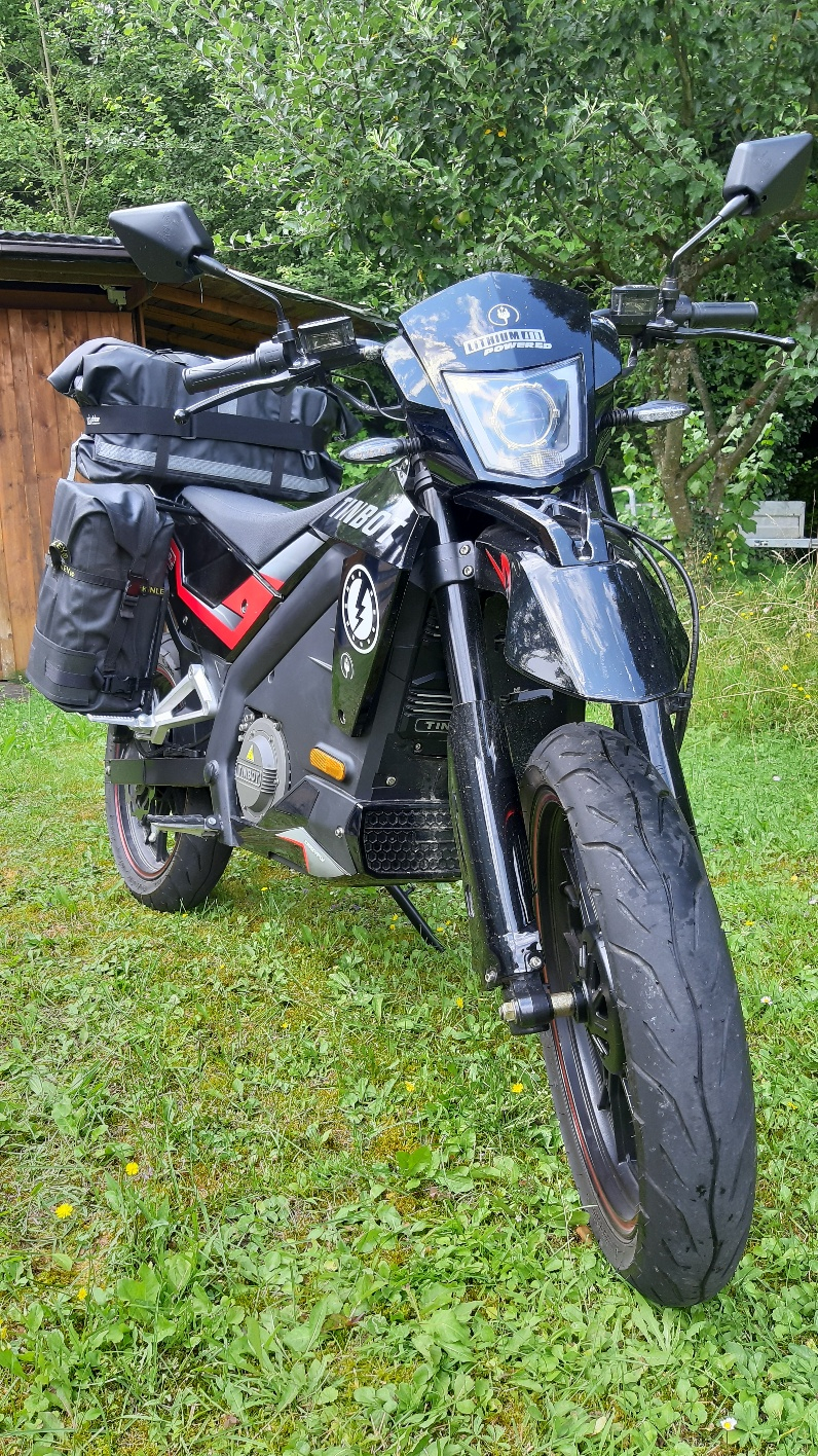 Nachdem meine 640er Ktm als Gespann mit Verbrenner immer noch viel Spaß macht und eine Probefahrt mit der TInbot Solo die Ernüchterung brachte das es im Gespann eher sehr träge wird habe ich mir jetzt eine Fast neue Tinbot mit 180 km auf der Uh4 gekauft um die hier rumstehenden Akkus sinnvoll zu nutzen.