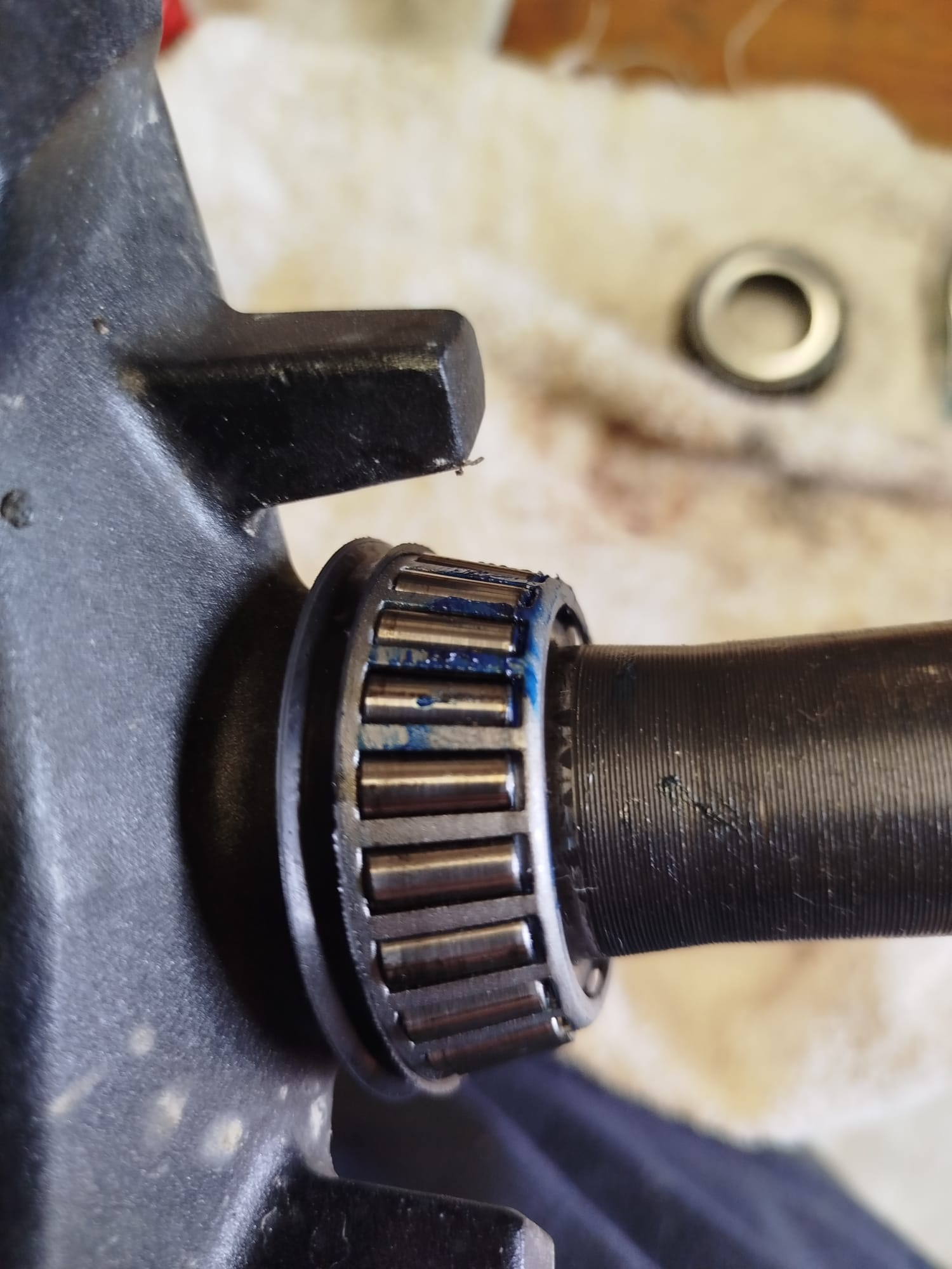 Heute habe ich mal genauer nach der Ursache für das Knacken beim Lastwechsel im Lenker gesucht und gefunden. Habe dafür an das Lenkkopflager gemusst. Nach dem Lösen der Kronenmutter ist mir die untere Brille mit der Lenkkopfwelle? (heißt das so?) in die Hände gefallen. Ich kenne das so, dass das obere Lager auf der Lenkkopfwelle kein Spiel hat sondern eine Passung hat. Hier konnte man das einfach draufwerfen. Daraufhin habe ich ein paar Körnerpunkte auf der Lenkkopfwelle gesetzt, so hat das Lager kein Spiel mehr und ging schön straff drauf. Genauso hatte die obere Brille Spiel auf der Lenkkopfwelle, diese wird mit einer Schraube von oben gegen die Kronenmutter gedrückt. Die Mutter habe ich mit 60Nm angezogen.
