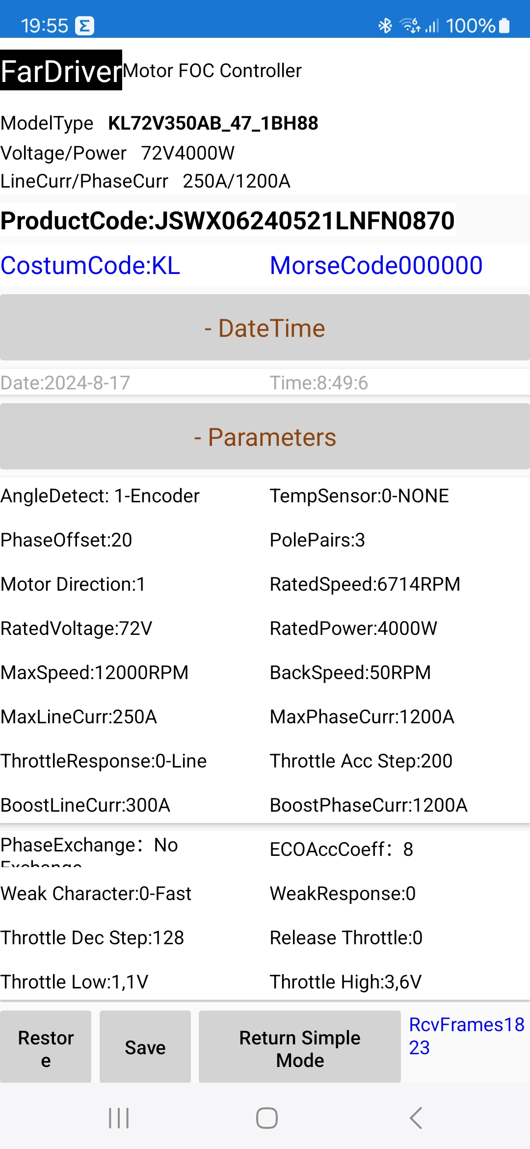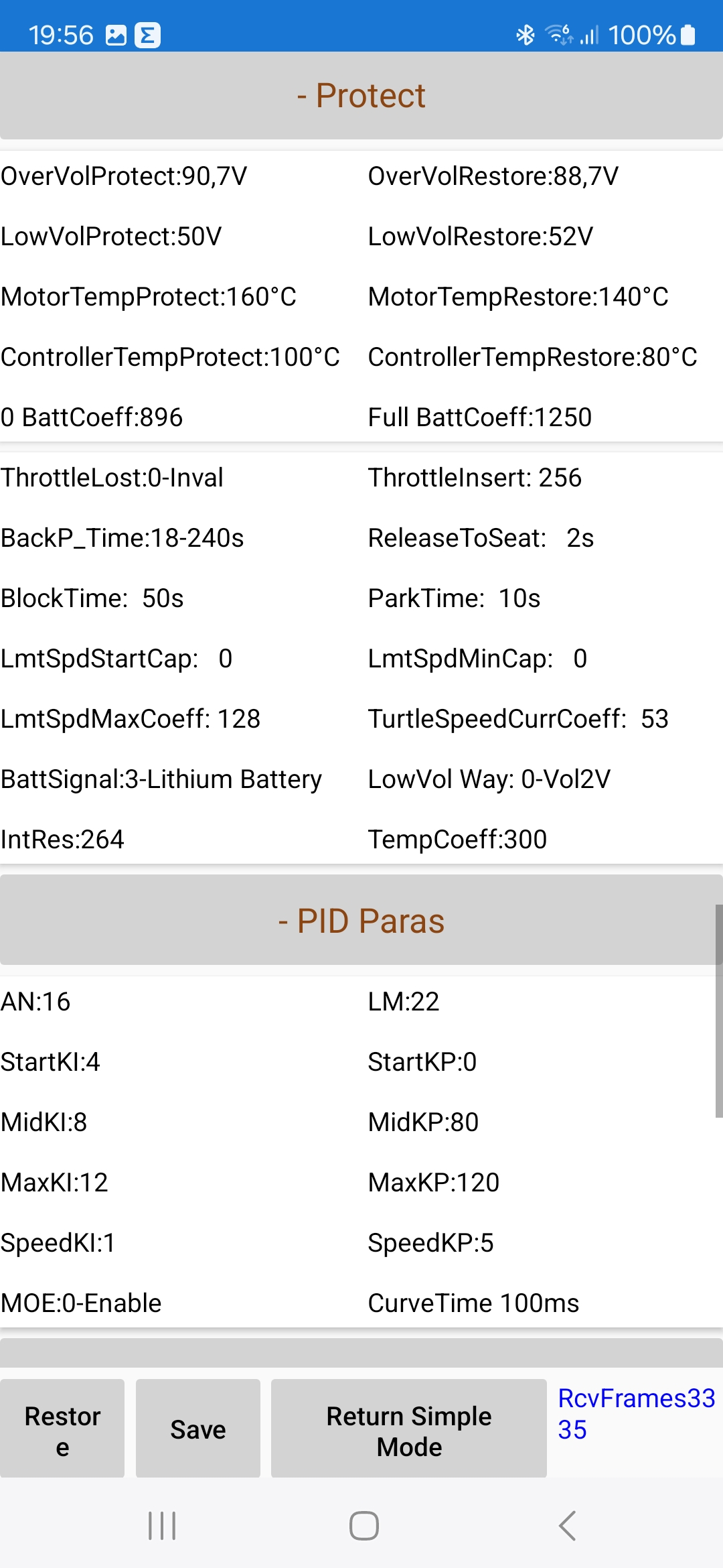 Das ist ja interessant, welchen Leistungspeak hast du bei den 250A Line Current? Kannst du den Line Current Wert nach oben ändern?Morkin hat geschrieben: ↑Sa 28. Dez 2024, 16:43Ich habe nun auch einmal die Parameter des Controllers ausgelesen.