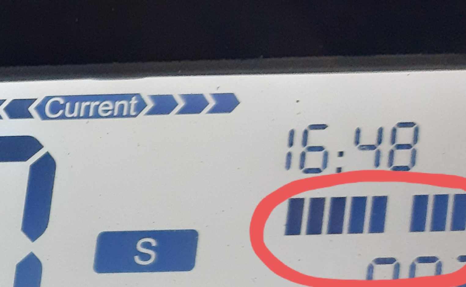 Die zwei Balken, die unter der Uhrzeit horizontal erscheinen, wenn beide Akkus angeschlossen und mit dem Kommunikationskabel verbunden sind. Sollte das nicht der Fall sein, ist dein Kommunikationskabel wahrscheinlich kaputt.