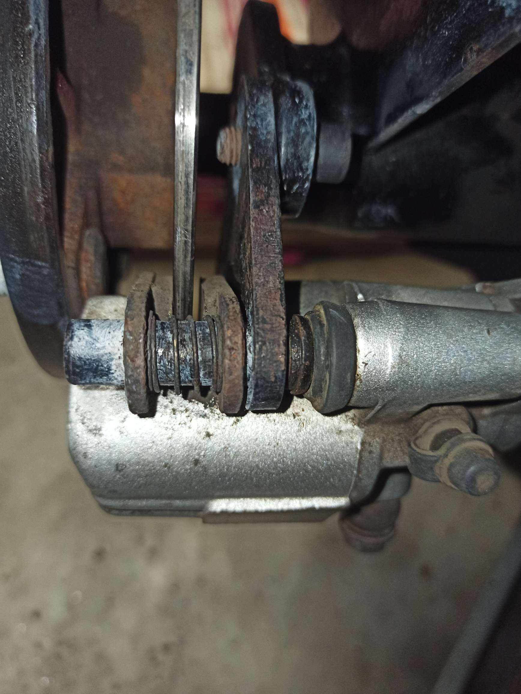 Mit der Schraube an der Bremszange kannst Du die Beläge etwas näher an die Scheibe bringen aber Eigentlich ist das für die Handbremse gedacht so wie ich das sehe .