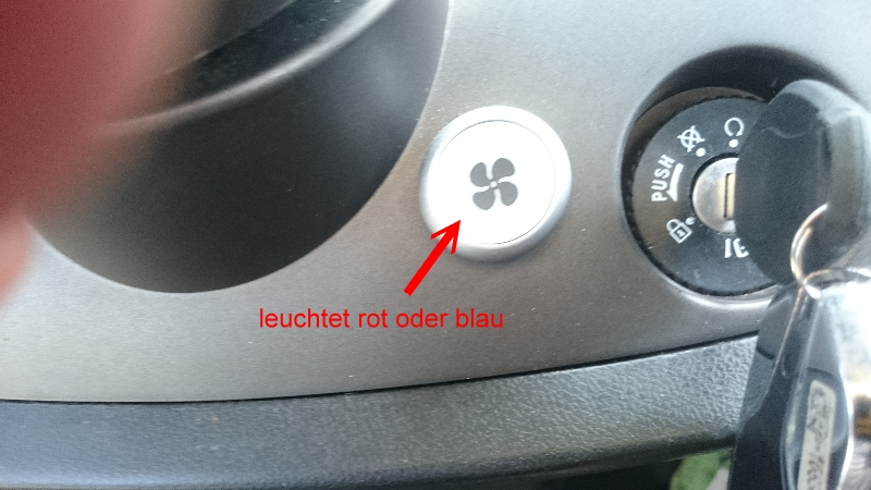 - Anzeige für Gebläse gebastelt, leuchtet rot wenn Gebläseschalter auf heizen steht, und blau, wenn er nur auf Lüften steht.