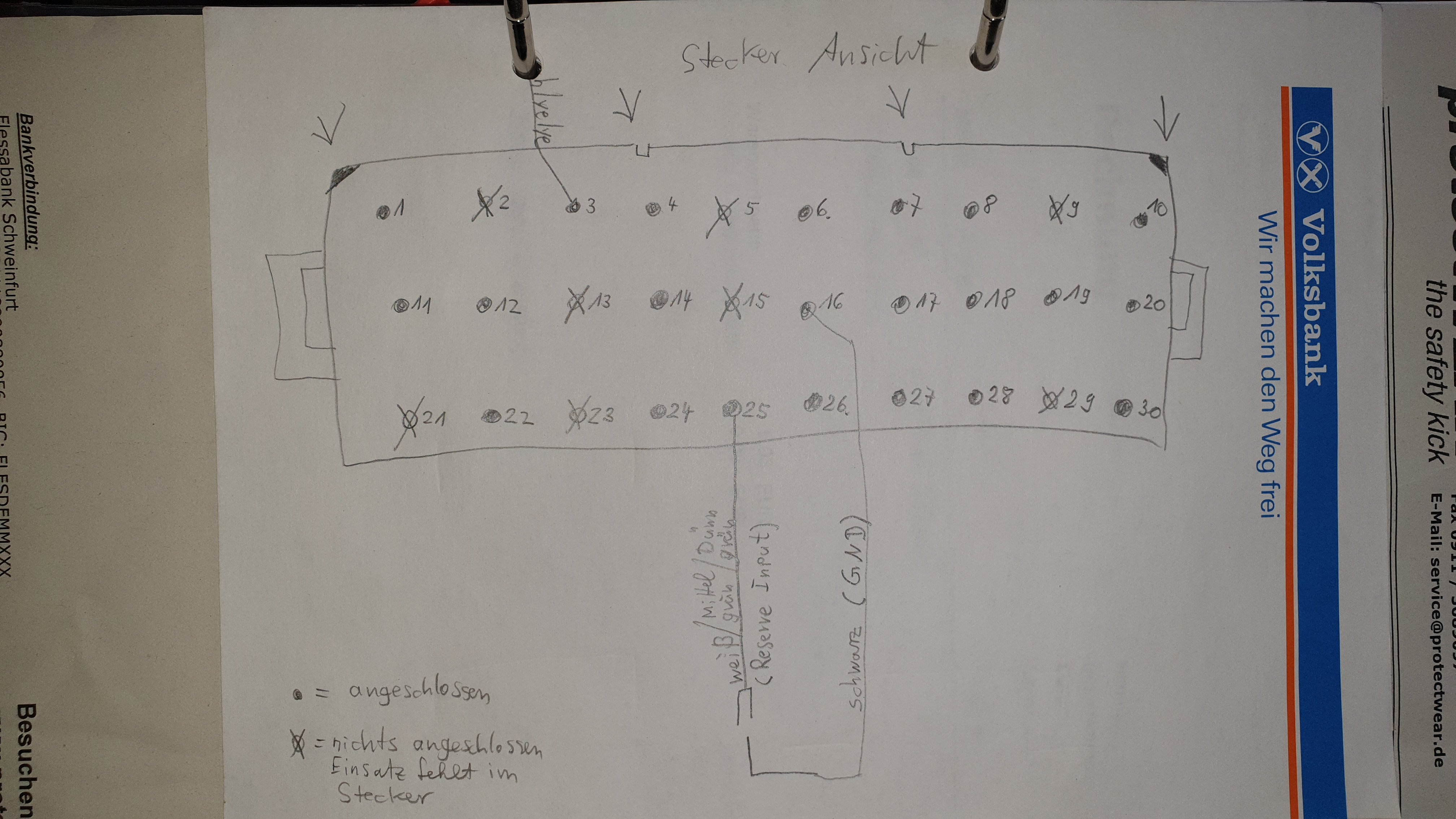 Hallo, weiß jemand, wozu der Steckverbinder am Kabelbaum des Steuergerätes dient? - Scheint dazu ausgelegt zu sein, das er bei Bedarf miteinander verbunden/zusammengesteckt wird, er verbindet den Pin 25 "Reserve Input" nach Pin 16 "GND" ...