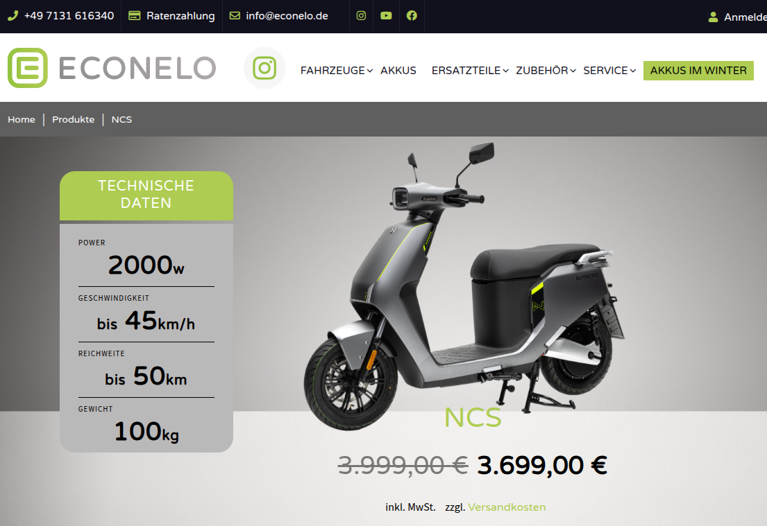 Wenn ich mir dieses Angebot ansehe, dann frage ich mich schon, weshalb der Roller 3.700 € kosten soll. Fährt nur 45 km/h, hat gerade einmal einen 2 kw-Motor und dann noch die lächerliche Reichweite von 50 km. - Der ist