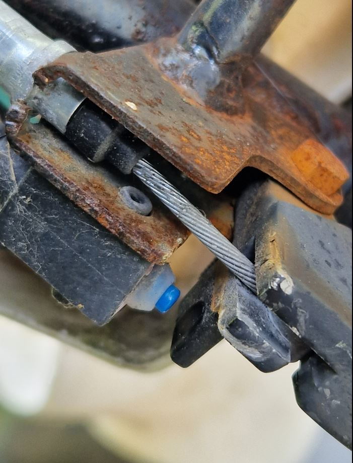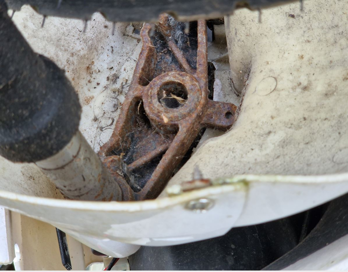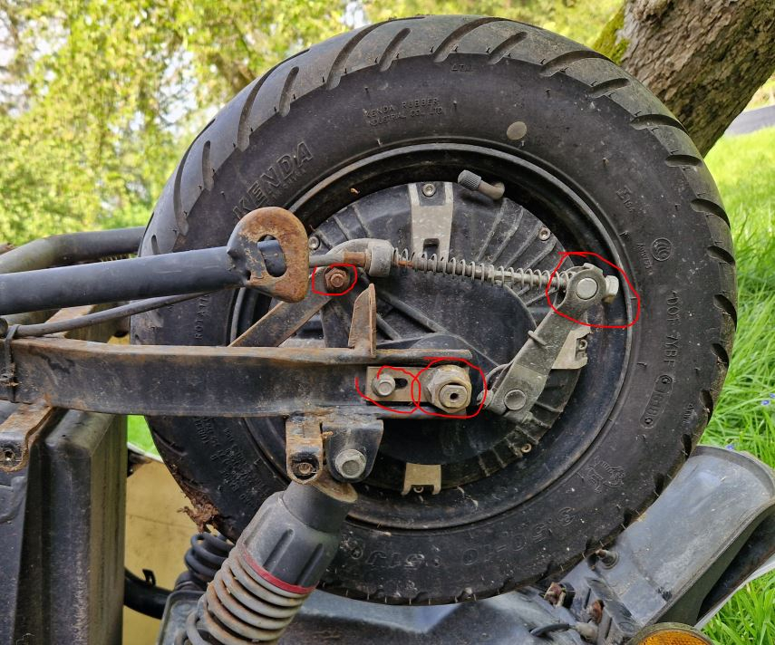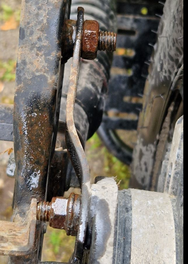 An der Schwinge und allem drumrum ist der Rost schon recht fortgeschritten.