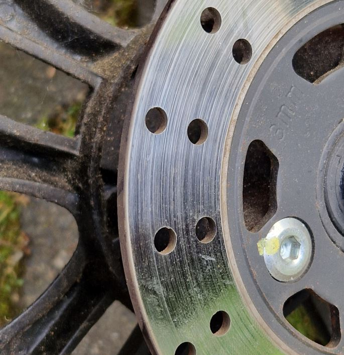 Die hydraulische Scheibenbremse vorn stellt sich natürlich selbst nach. Diese sieht übrigens nach 3200km noch sehr gut aus und hält sicher noch viele km.
