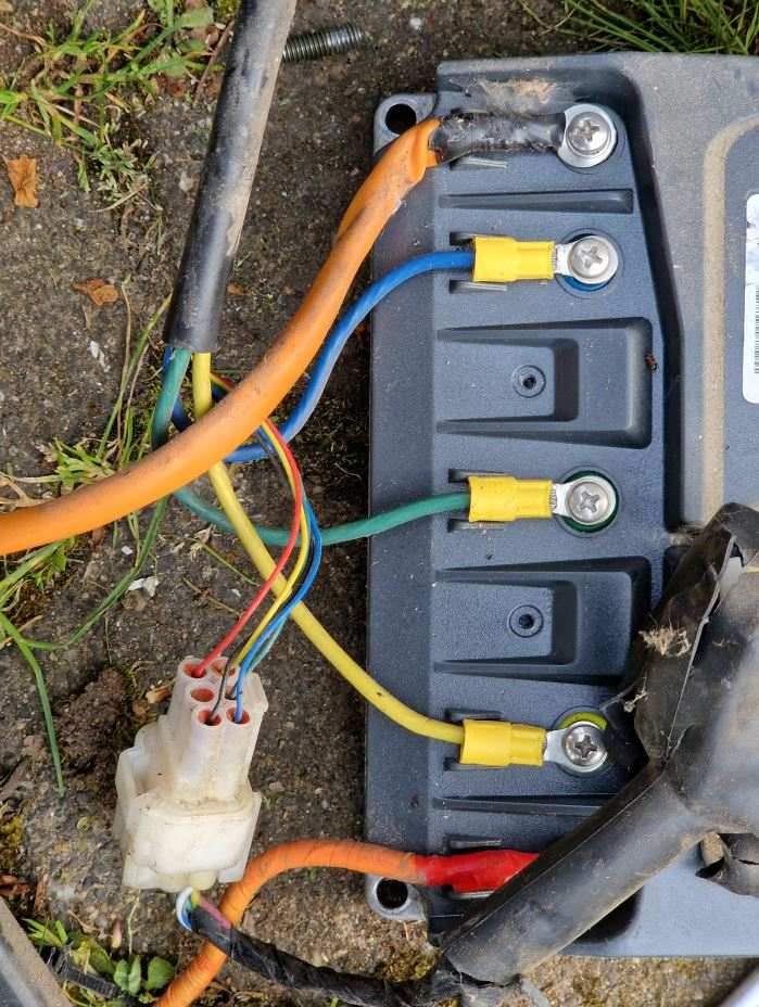 Die Motorleistungkabel haben keine Stecker/Kupplung, sindern sind direkt am Motortreiber festgeschraubt:
