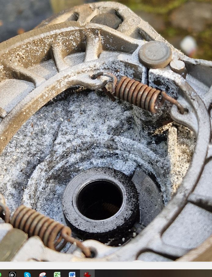 Wenn man den Motor dann nach Hinten herausgezogen hat, kommt einem schon der Deckel der Trommelbremse entgegen.