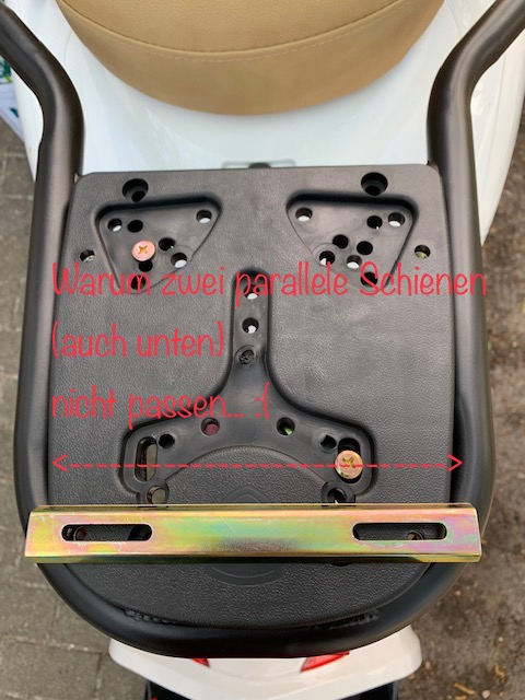 Bei Youtube gibt's zwar etliche Videos, aber superlang, z. B. 22 (!) min., und/oder nicht zu meinem Topcase mit meinem Zubehör, lange und kurze Schrauben etc... [Es ist für mich auch IMMER ein Rätsel, wo eigentlich genau so eine Unterlegscheibe hingehört. Das habe ich dort auch nicht gesehen.] Nach einigen Videos (und einer Homepage über Unterlegscheiben