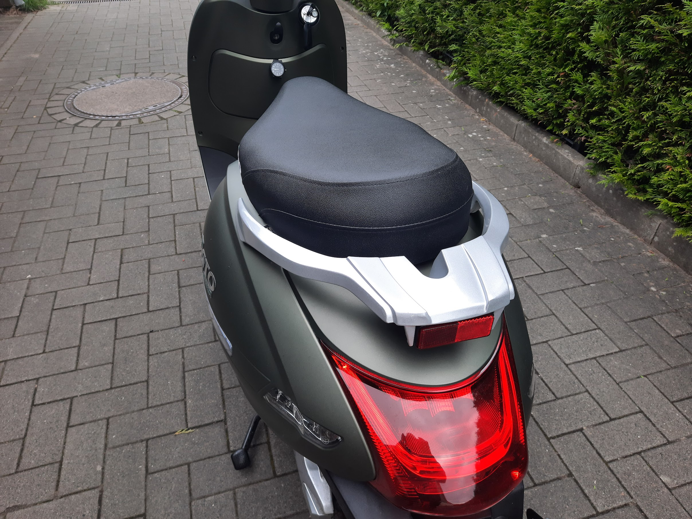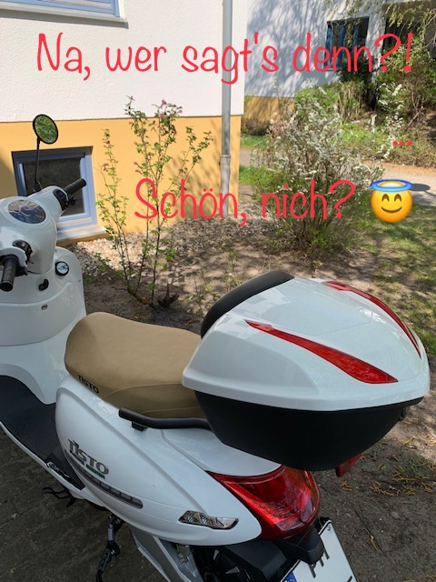 Heute ging's ans Montieren des Topcase - gleich bei Tisto mitbestellt - obwohl sie pur auch sehr gut aussieht. Aber durch die Riesenakkus bleibt nicht so sehr viel Stauraum, Helm schwierig...