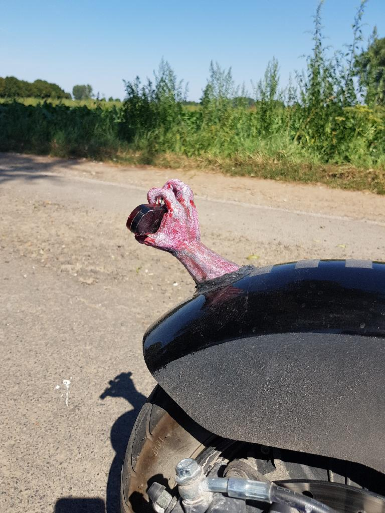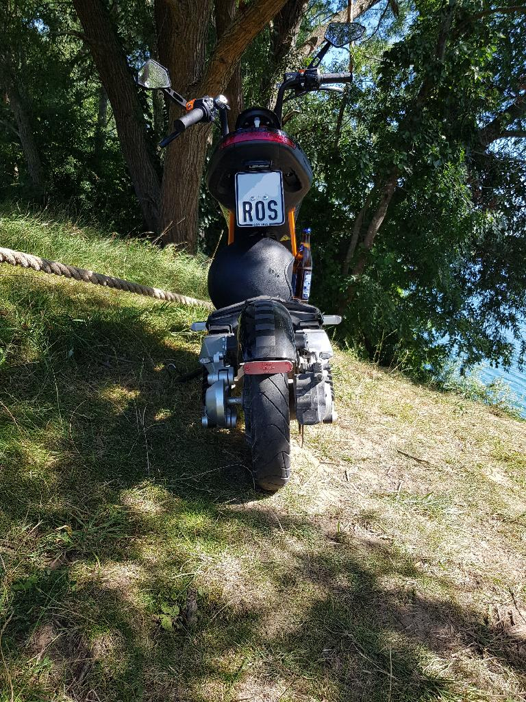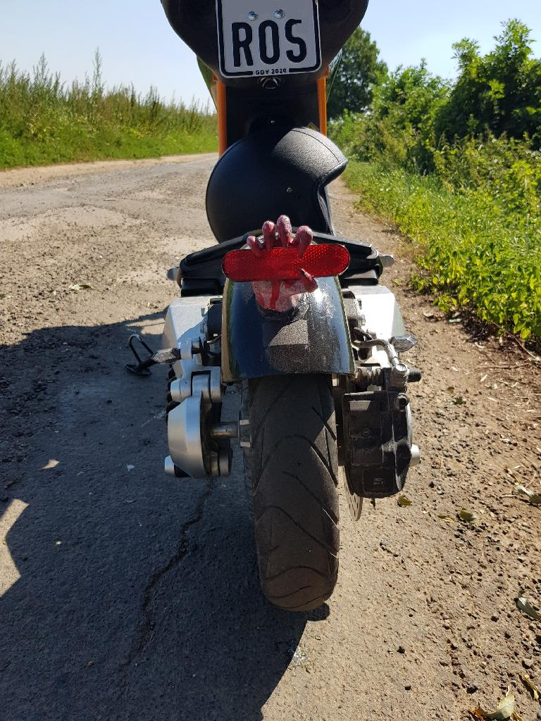 halter und blinkerhalter dran laminiert reflecktor und nr schild halter dran und alles um sonst ,damit sah er von hinten wie ein tret roller aus .