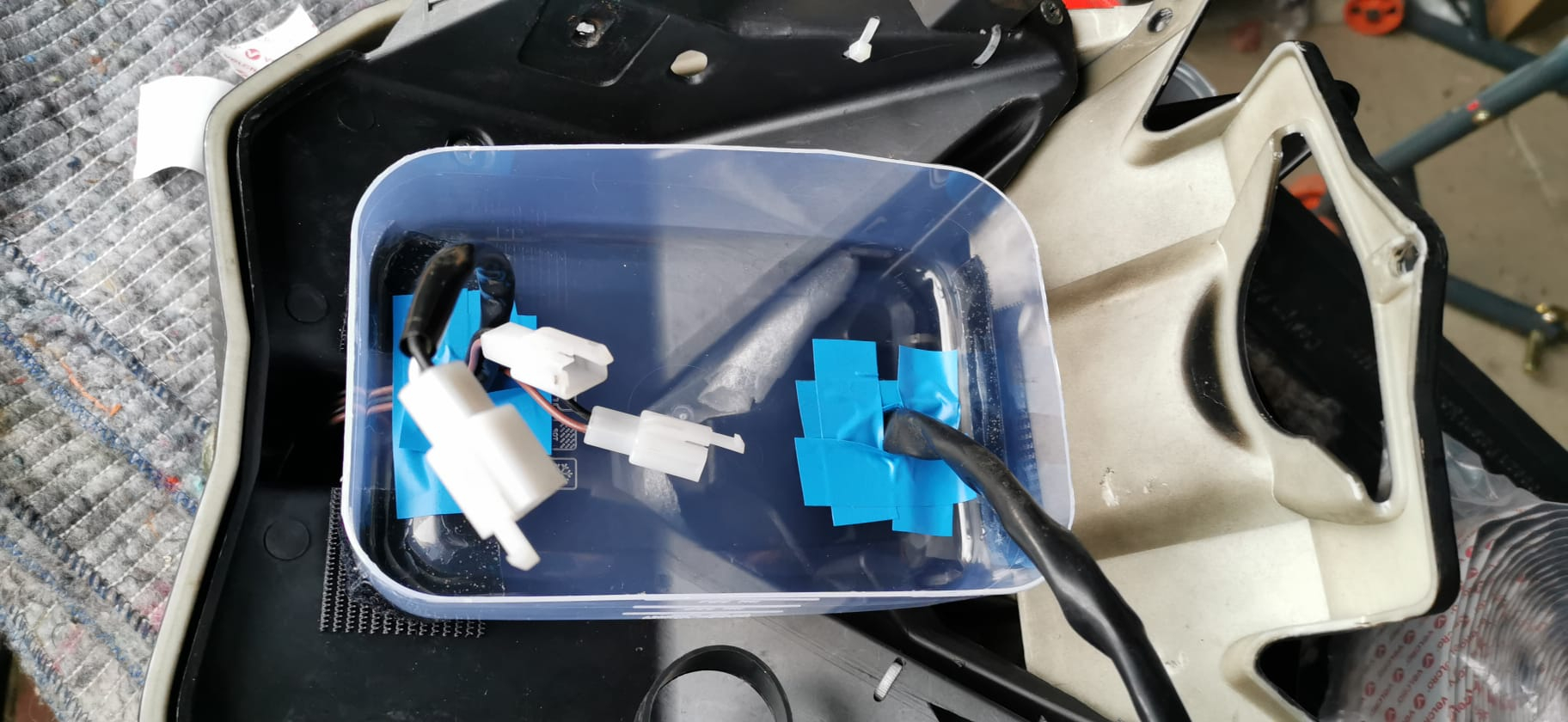 Nun die Action-Cam mit aktivierter "motion-detection" vorne in das Gehäuse einlegen, einschalten und mit einem sicheren Gefühl auf Tour gehen :D .