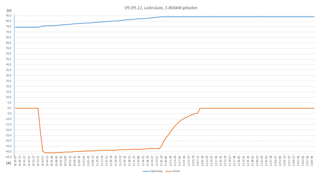 Nach 86 Minuten hatte ich vorhin 3,866 kWh an der Typ2 Ladesäule "getankt", inkl. ca. 20 Minuten Ausbalancieren (siehe ab 11:47 Uhr).