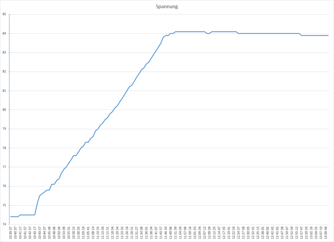 Habe extra (für conny-r) nochmal 1h gewartet um zu sehen ob nach dem Ausbalancieren noch Strom fließt und ob die 84V Spannung auch dann noch anstehen.