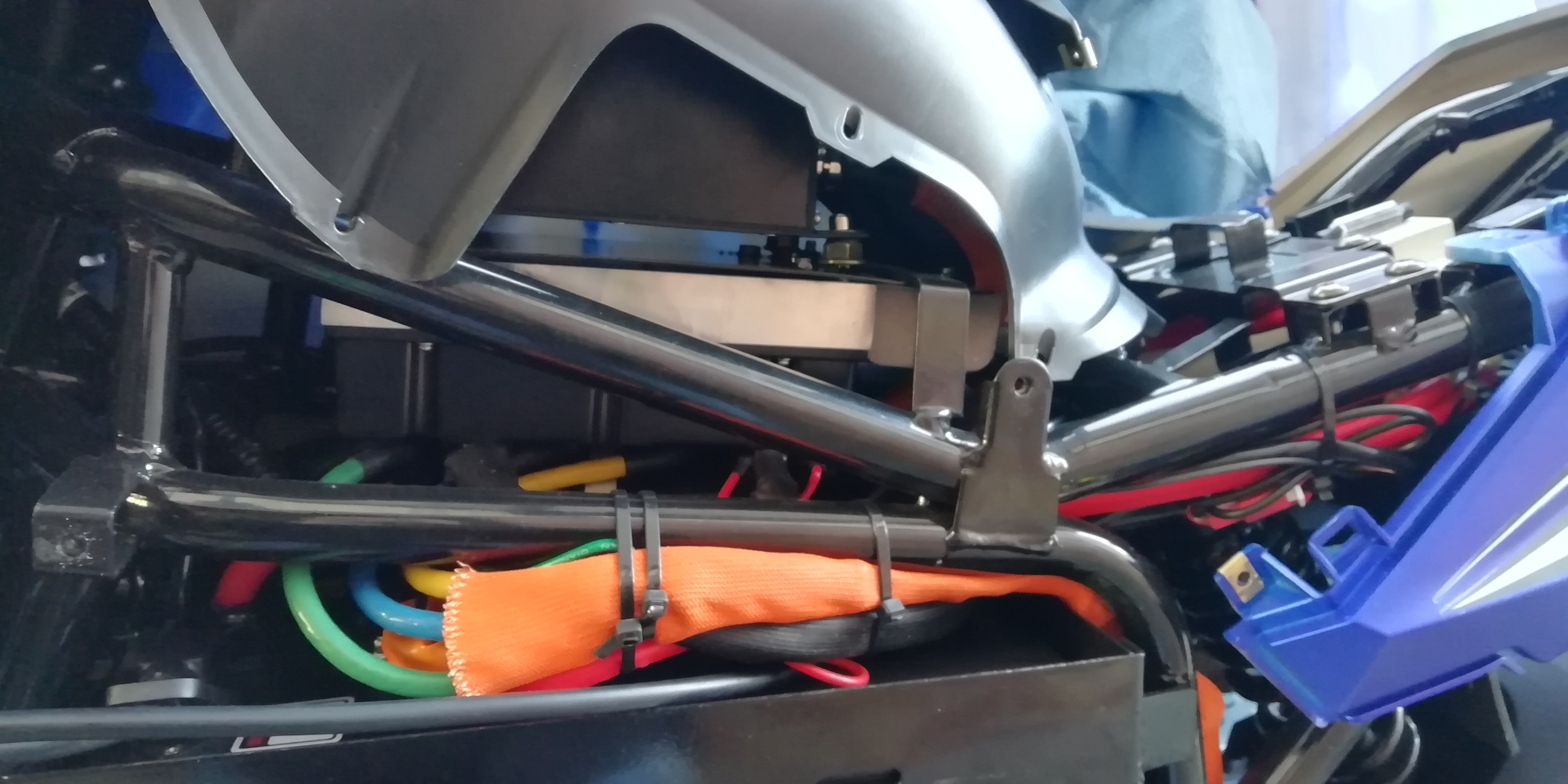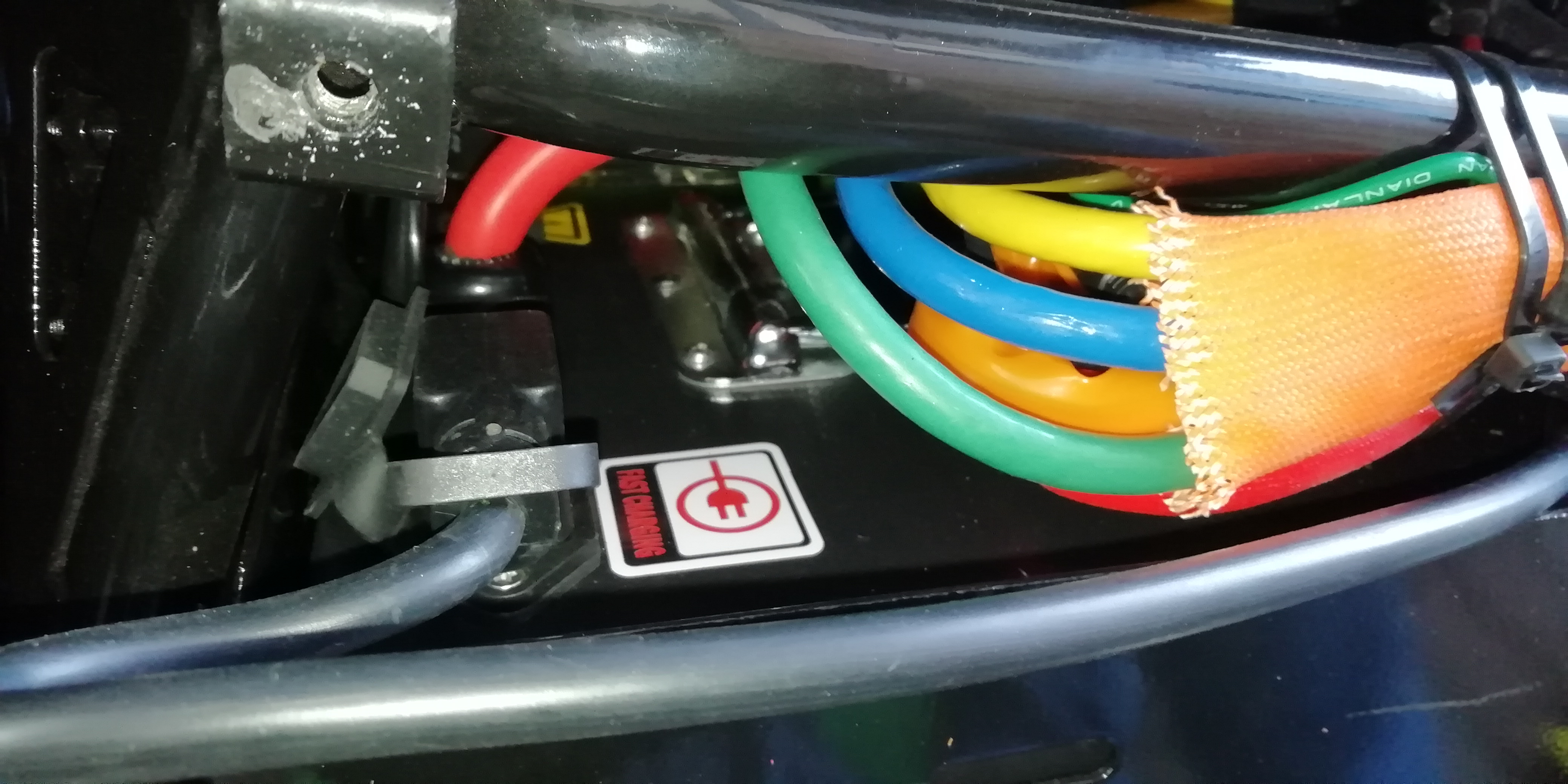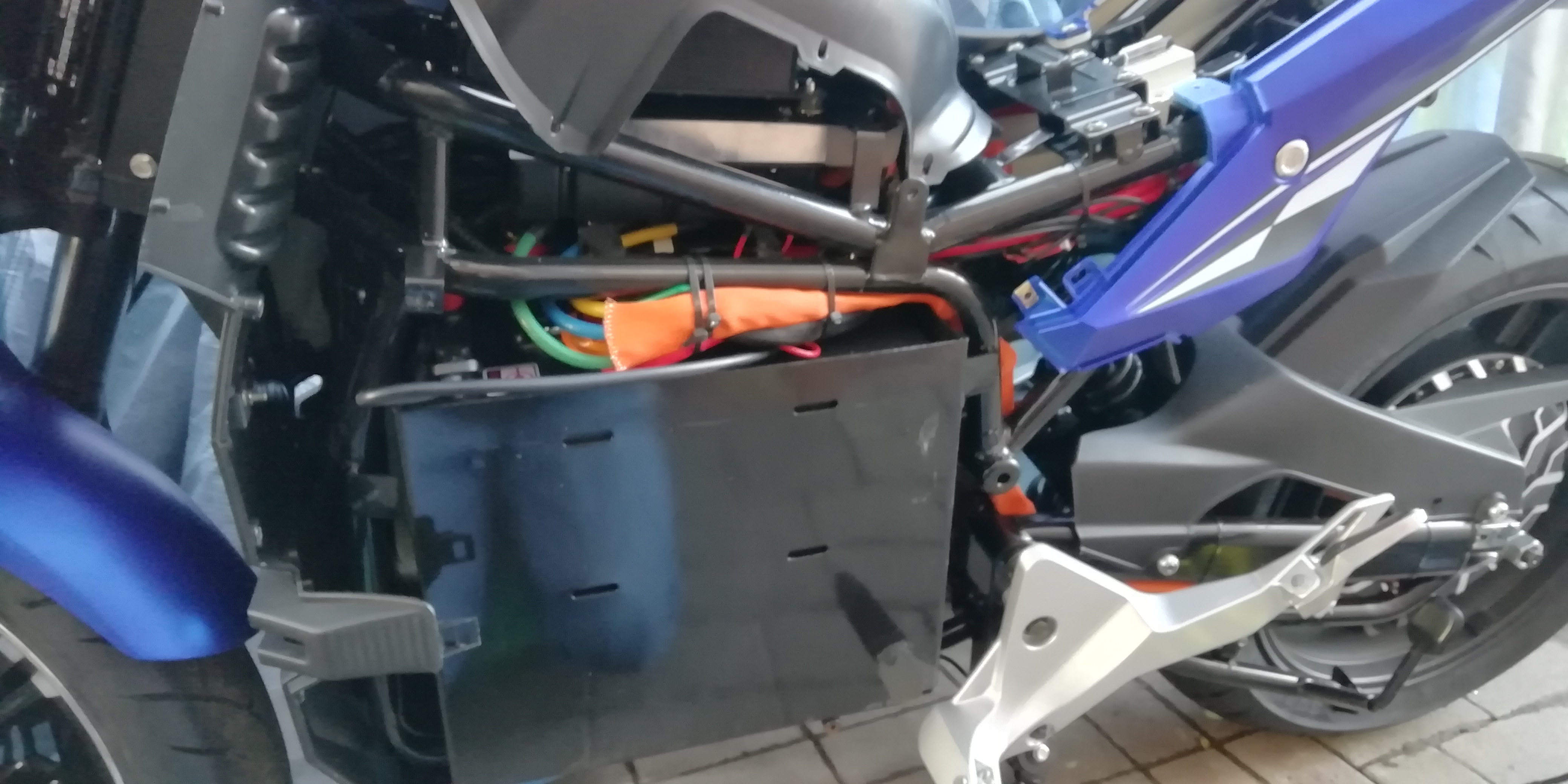 Vom Ladegerät geht ein schwarzes Kabel direkt an den Fast Charging vom Akku. Das Orange Kabel vom Lader geht auf der anderen Seite runter, sah aus als geht es auf einen Stecker und von dort dann zum Typ 2 und vielleicht auch noch wo anders hin, konnte man aber von dort nicht besser erkennen.