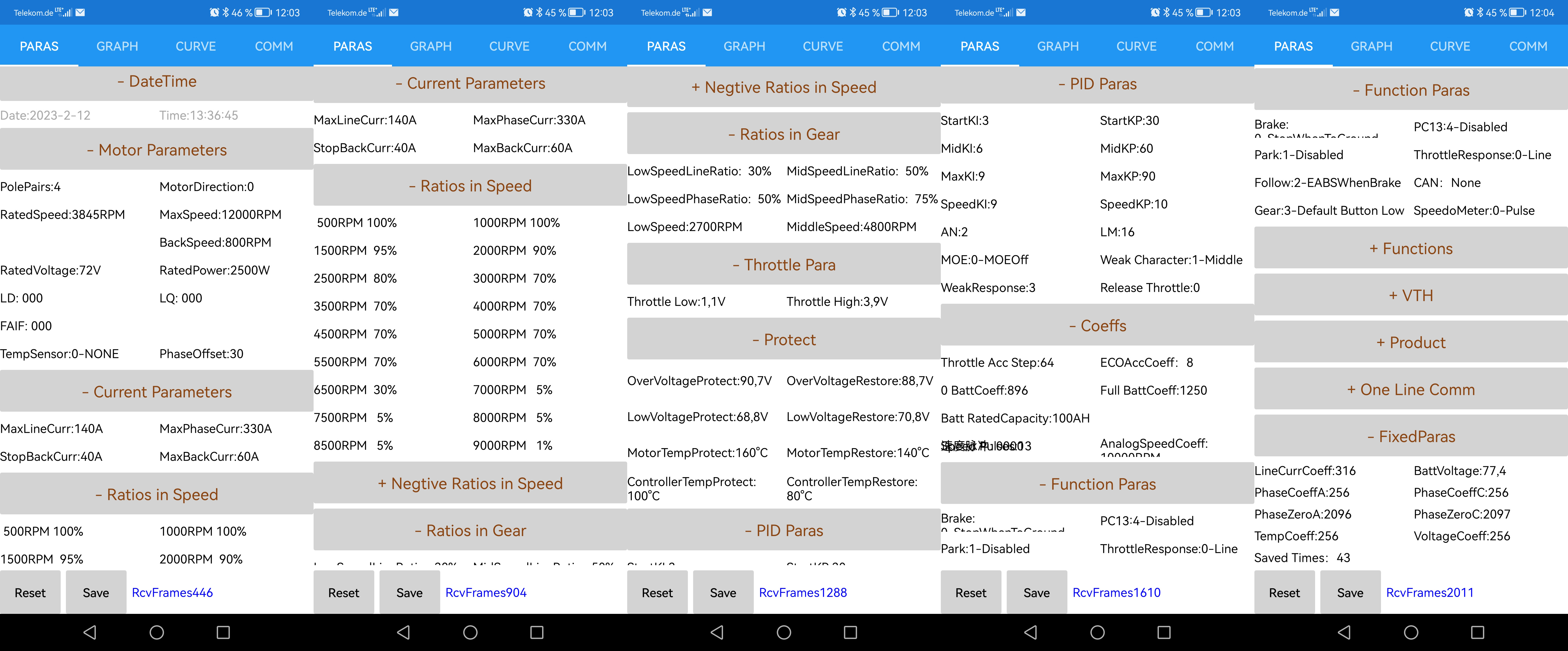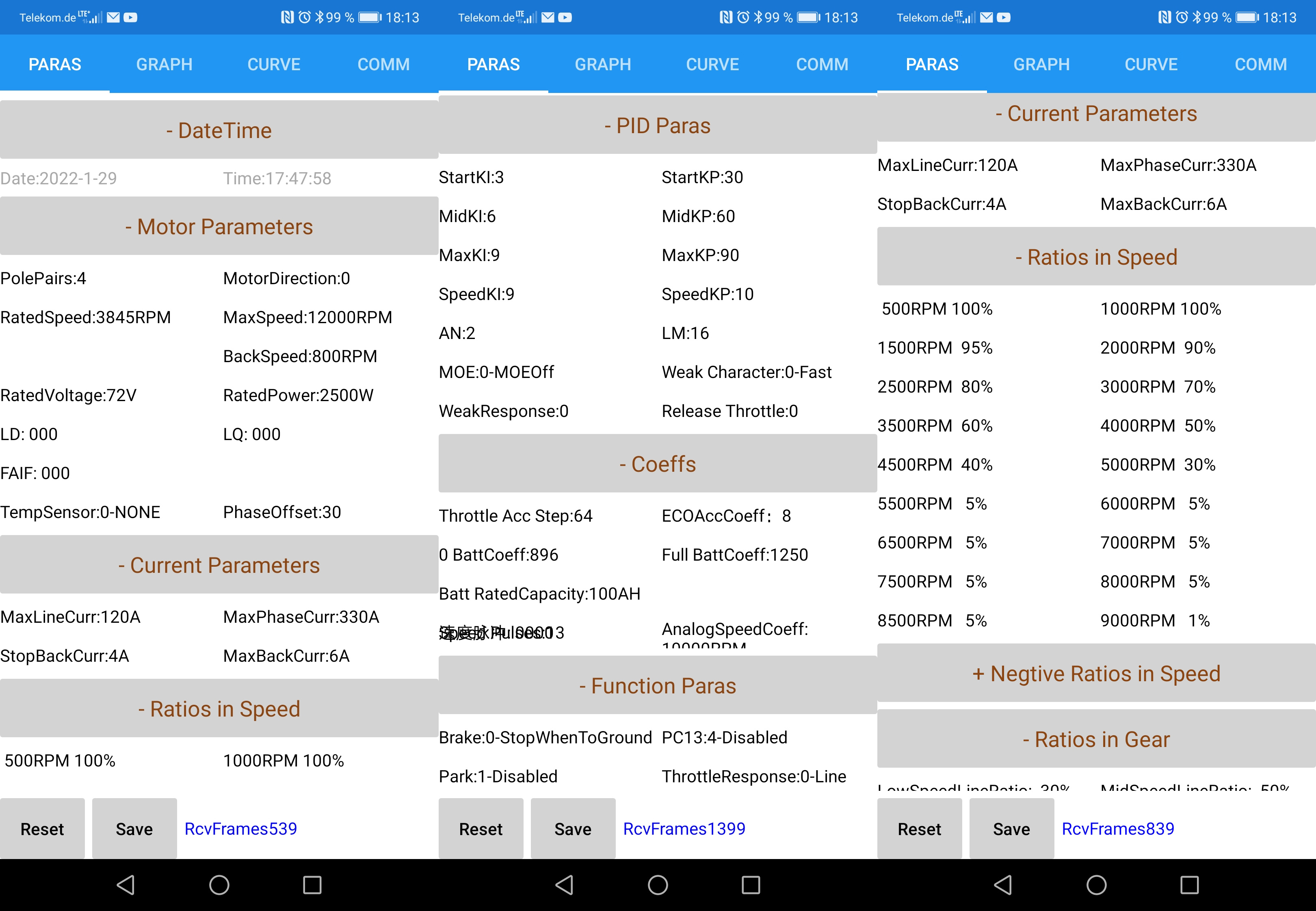 Die maximalen Umdrehungen stellst Du mit dem Parameter RatedSpeed sowieso NICHT ein. Das ist die konstruktionsbedingte Umdrehungszahl des Motors bei 72V ohne Feldabschwächung. D.h. über den Parameter erkennt der Controller, wann er mit der Feldabschwächung beginnen soll (falls sie aktiviert ist).