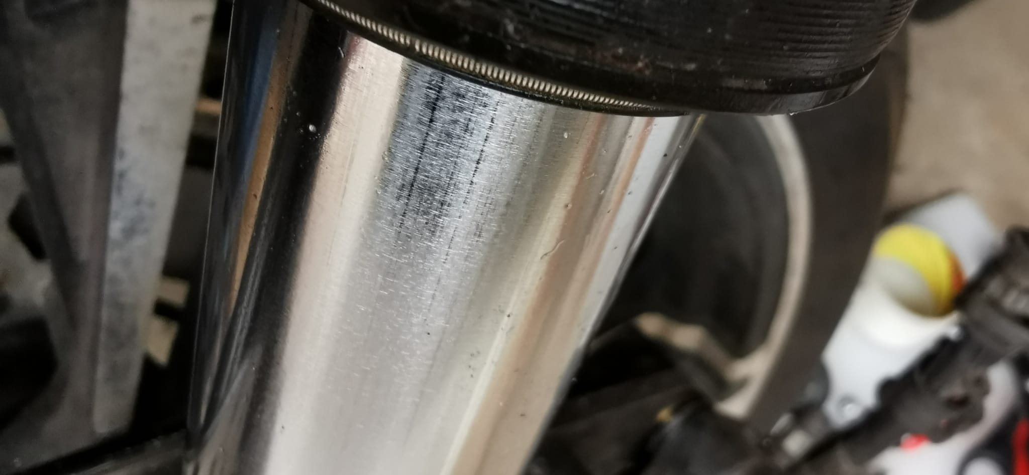 It also makes the end lock softer doing this. I tried doing the same on the left, but it kept falling off for some reason, but that side seems OK and does reach the end stop on full lock, though the bars can still scrape the tank a bit.