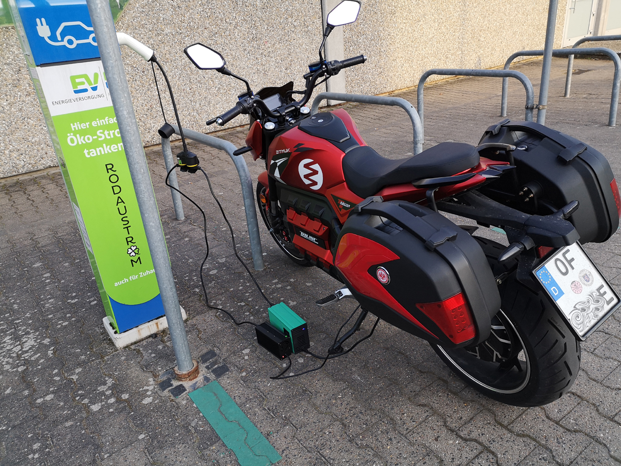 Jetzt hängt der E-Odin brav an an der Zapfsäule und will in ca. 3h abgeholt werden (lade gerade mit 24A) :roll: .